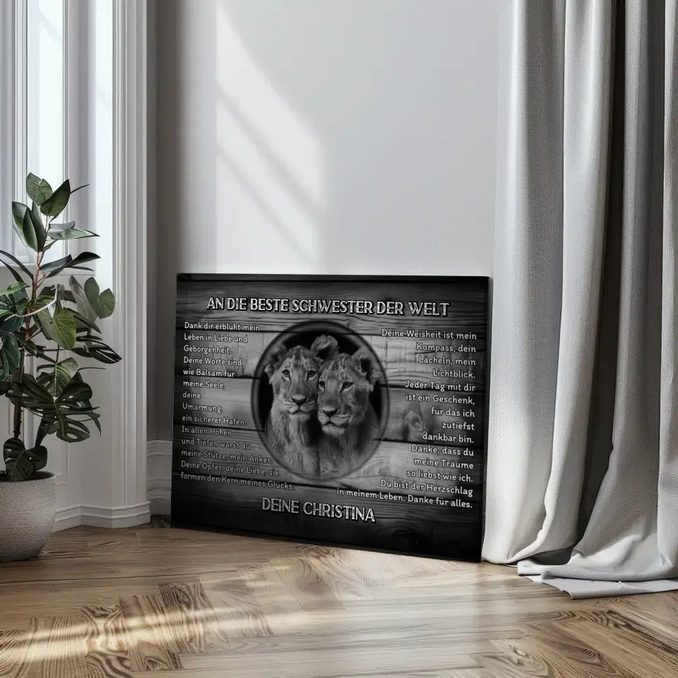 Unsere Löwen Leinwand für Schwester Schwarz Weiß