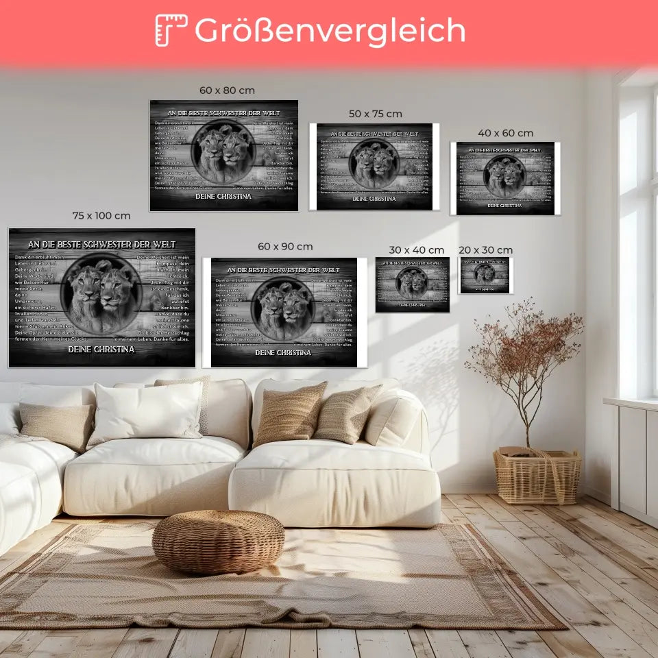 Du bist auf der Suche nach einem schönen tollen Geschenk? Dann ist Unsere Löwen Leinwand für Schwester Schwarz Weiß ein wirklich einzigartiges personalisiertes Geschenk.