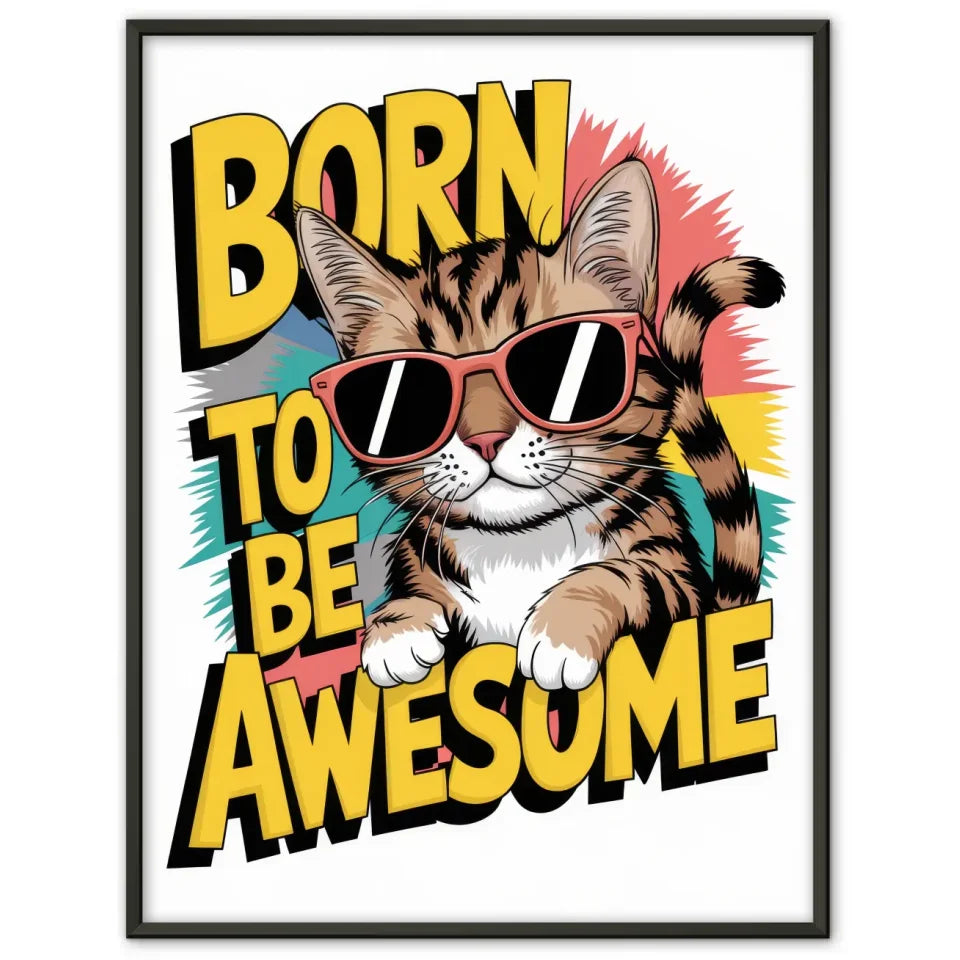Lustiger Katzenposter mit Sonnenbrille und Born to be Awesome Spruch