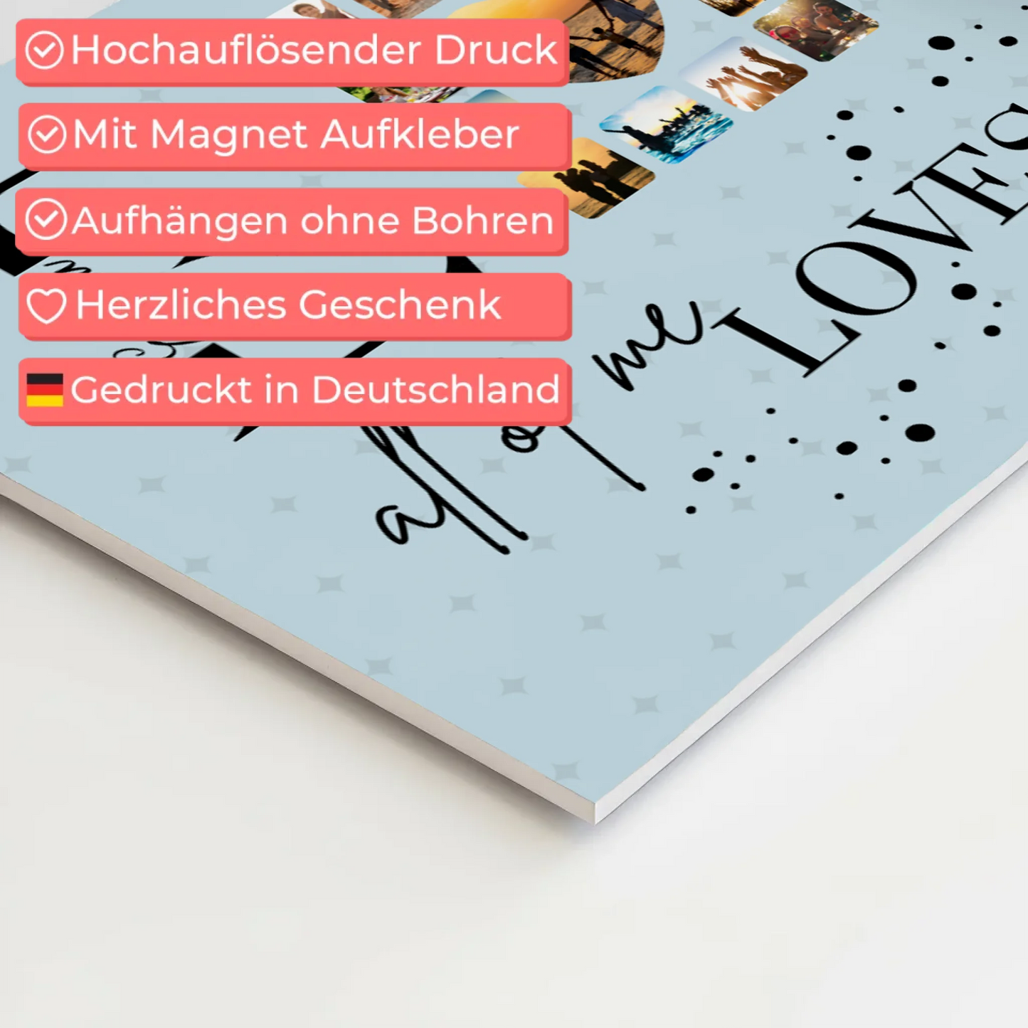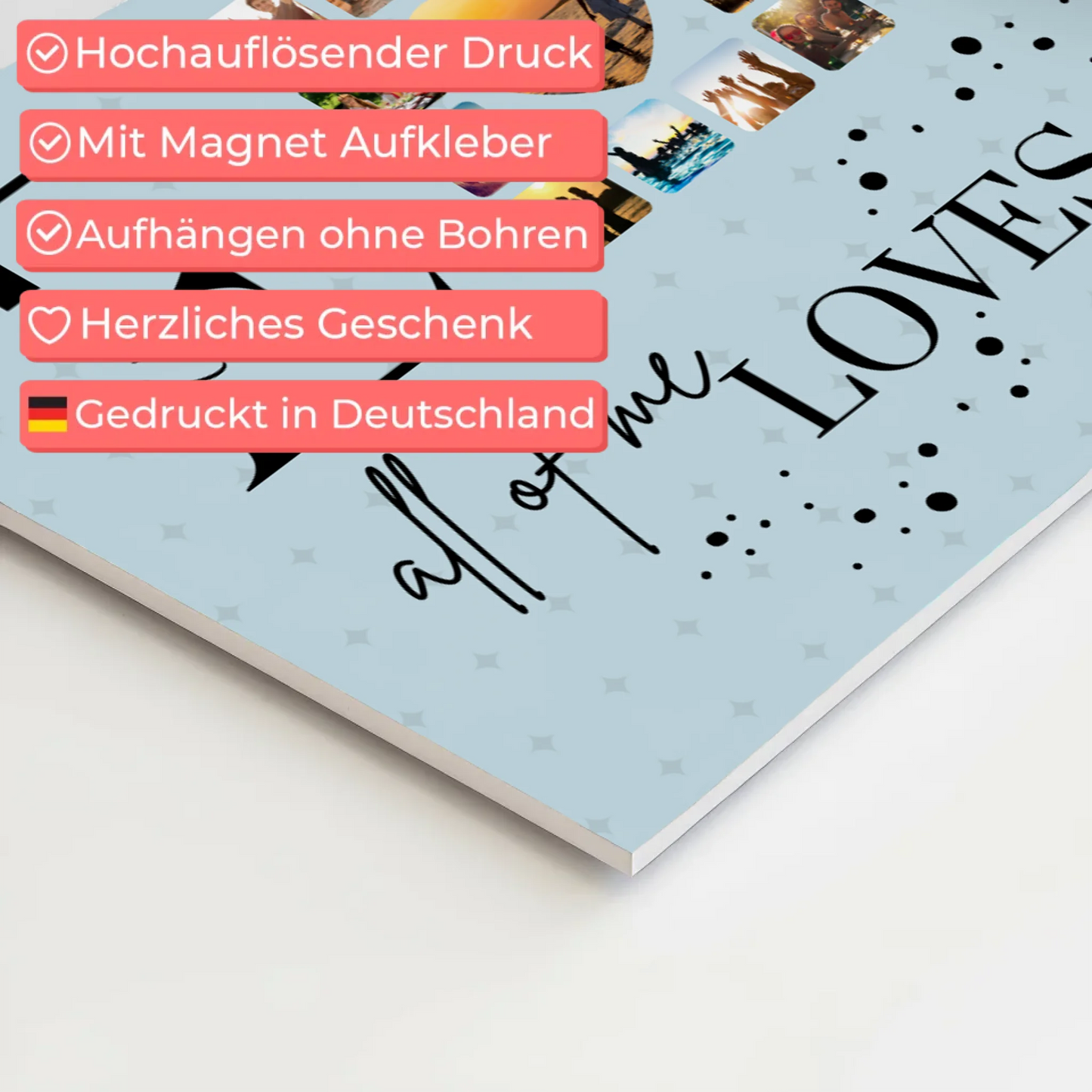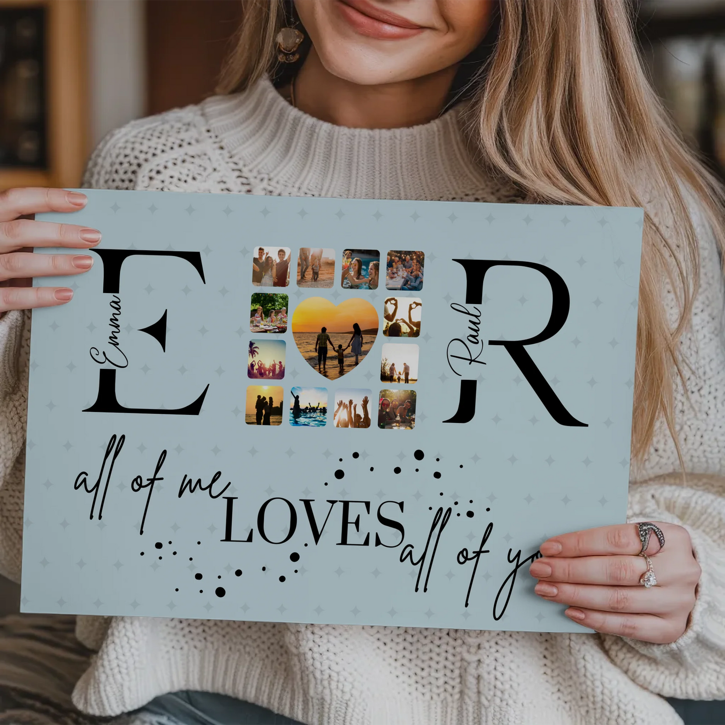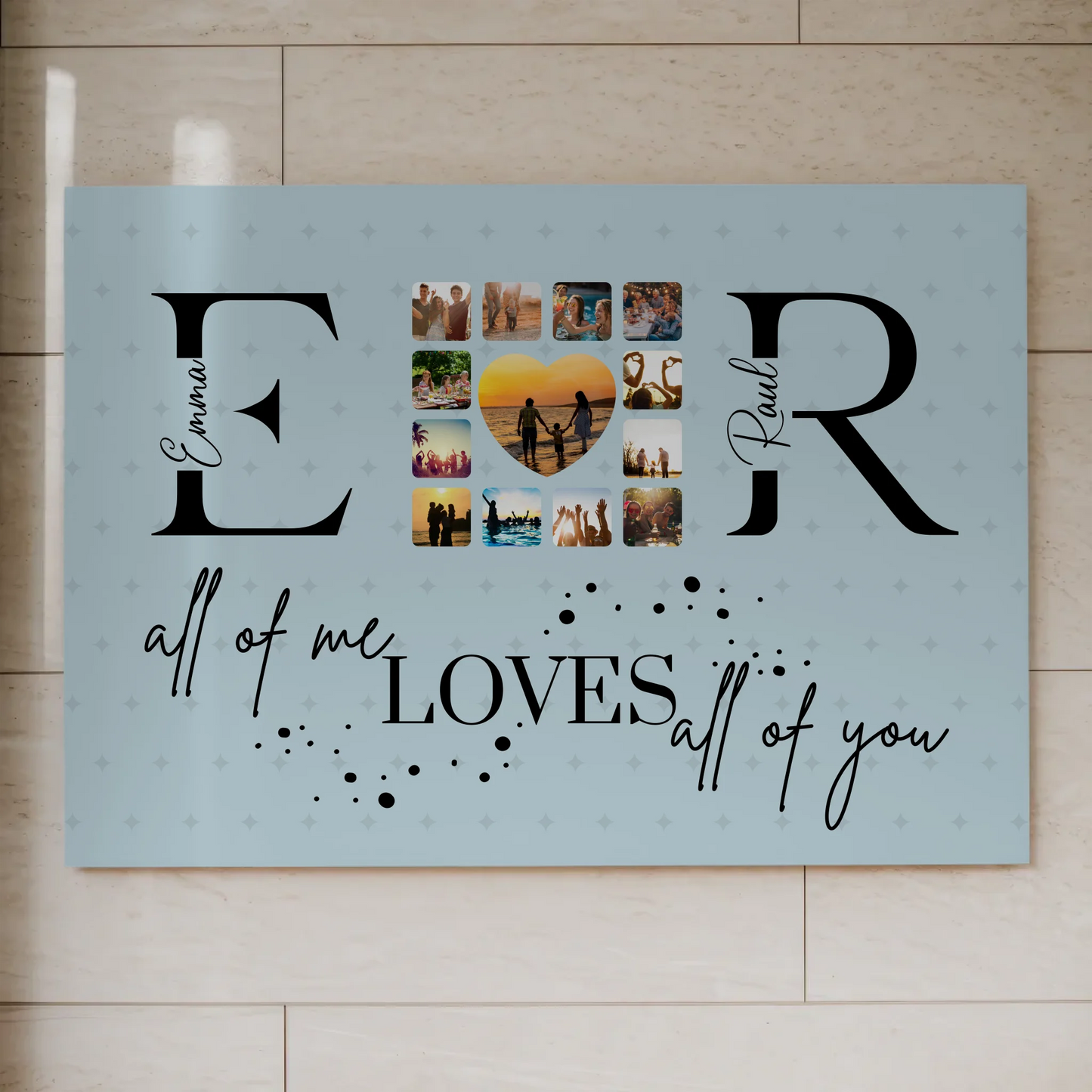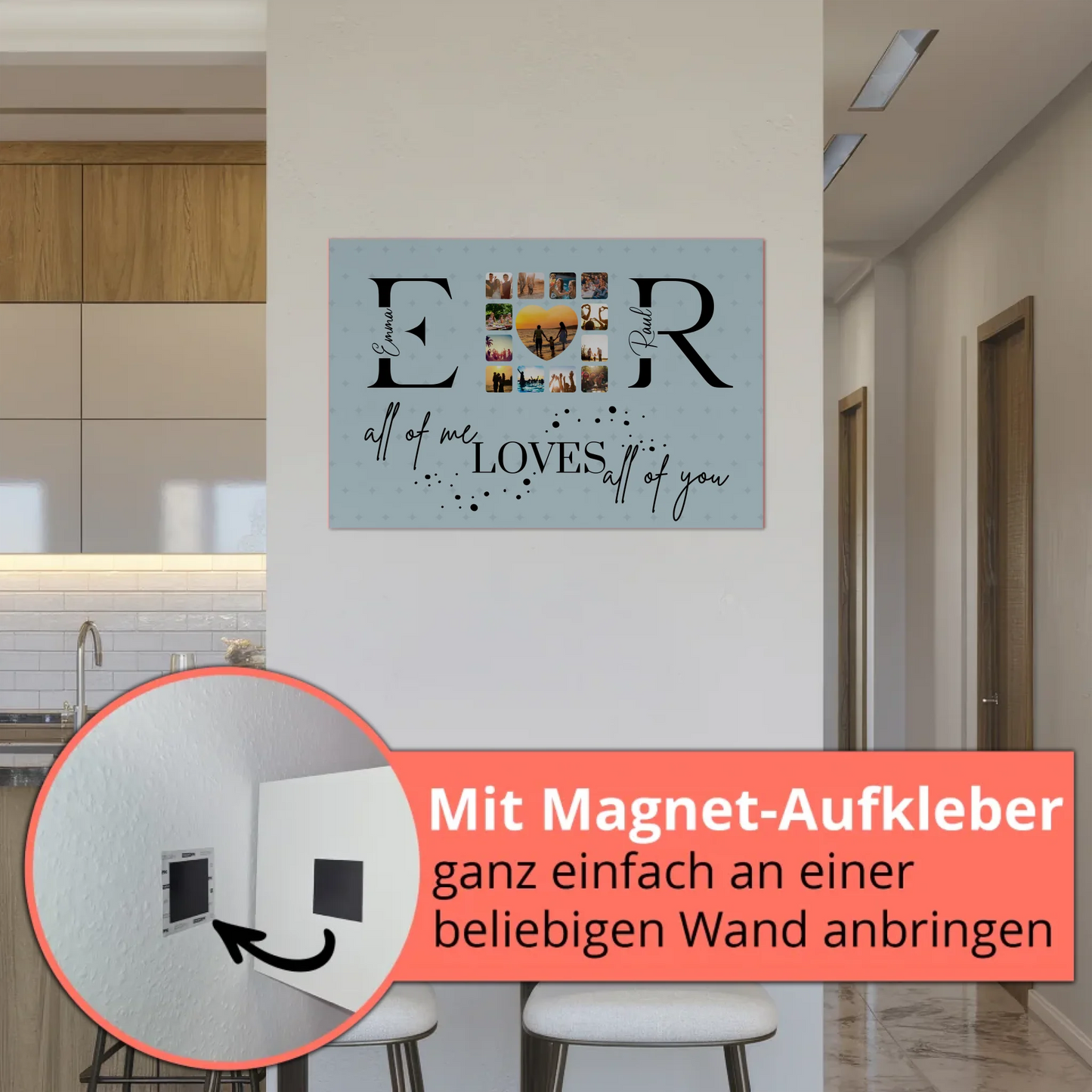 Magnet Fotoboard Geschenk Personalisiert Mit Fotos Initialien und Fotos All Of Me Loves All Of You