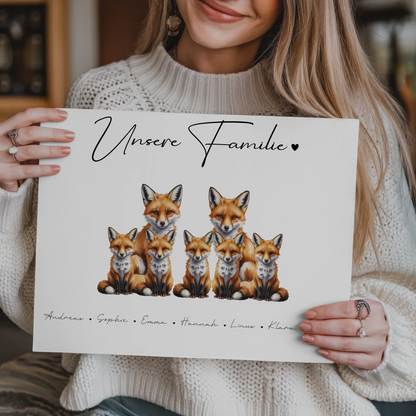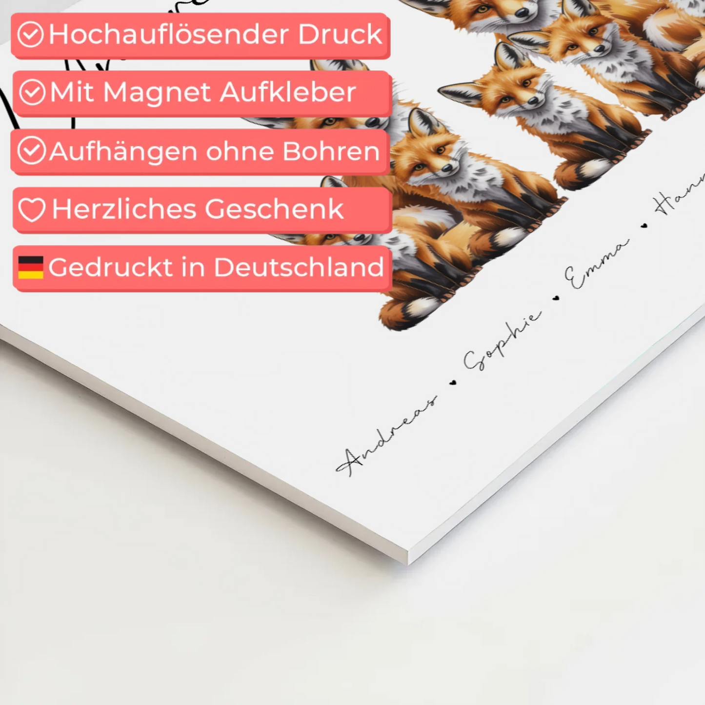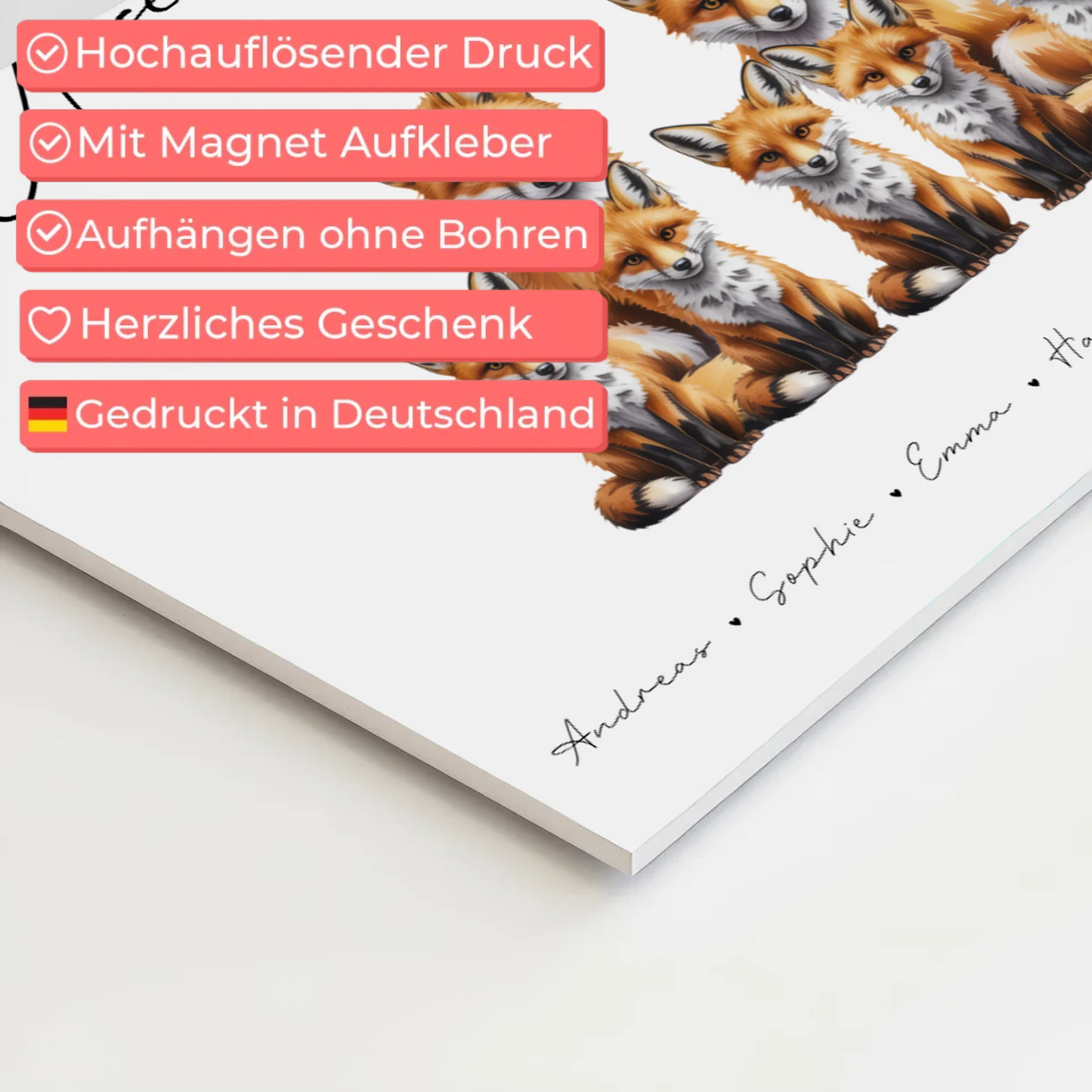 Magnet Fotoboard Personalisiert Familie Fuchs Familienporträt Geschenk für Papa Mama Oma Opa