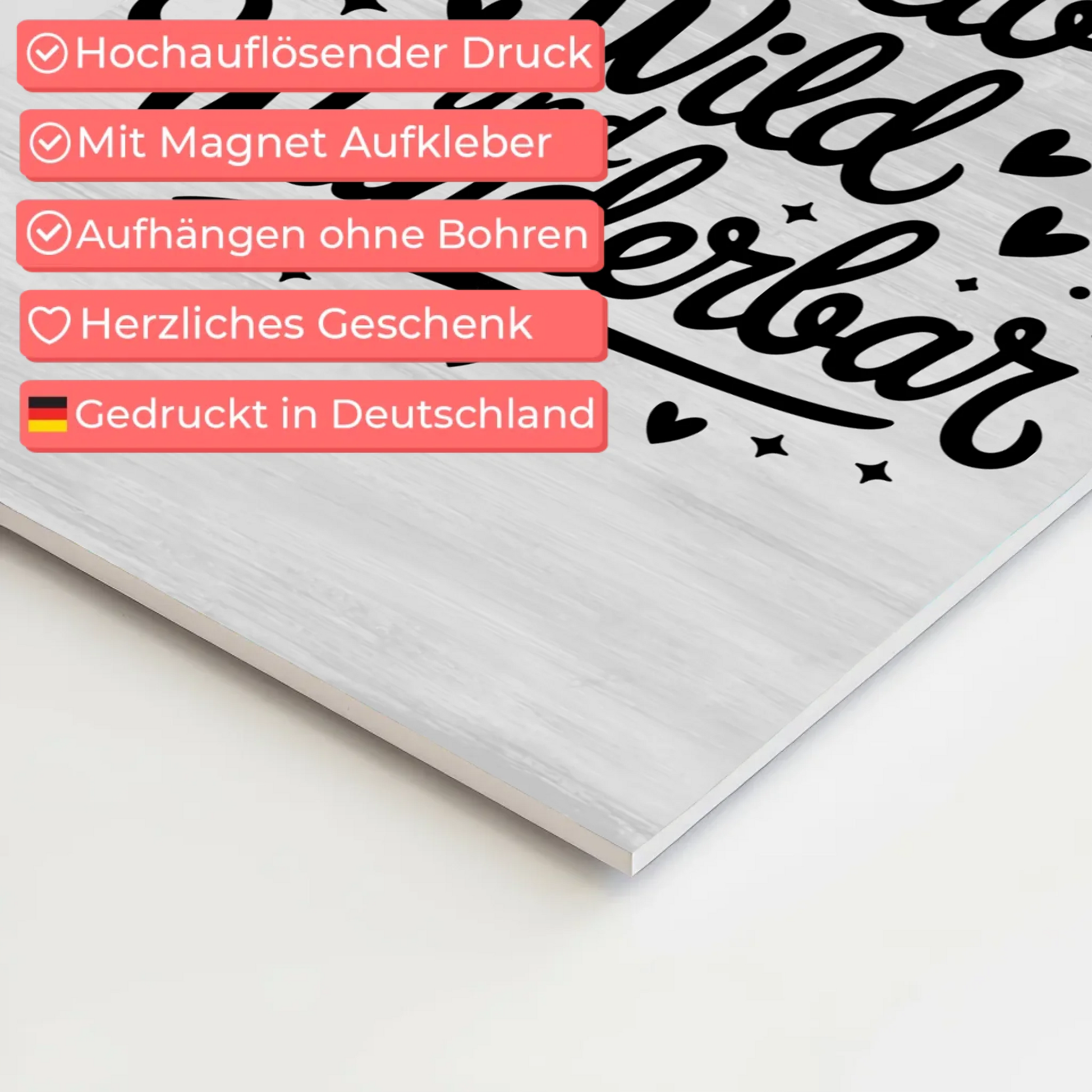 Mache aus deinem Raum einen Ort der Inspiration mit dem SpruchMagnet Poster Fotoboard. Bestelle jetzt dein personalisiertes Geschenk, das nicht nur schön aussieht, sondern auch eine positive Botschaft vermittelt: Bleib wild und wunderbar!