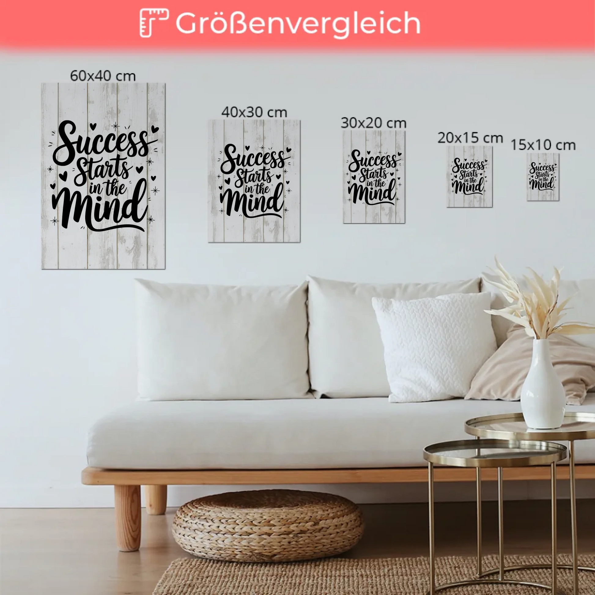 Entdecke das perfekte Geschenk für jeden Anlass: unser Magnet Poster mit Spruch. Mit dem inspirierenden Zitat Success starts in the mind ist dieses Poster nicht nur ein dekoratives Highlight, sondern auch eine tägliche Motivation. Du kannst das Hintergrundbild ganz nach deinem Geschmack personalisieren und so ein einzigartiges Magnet Poster Fotoboard Mit Spruch gestalten.