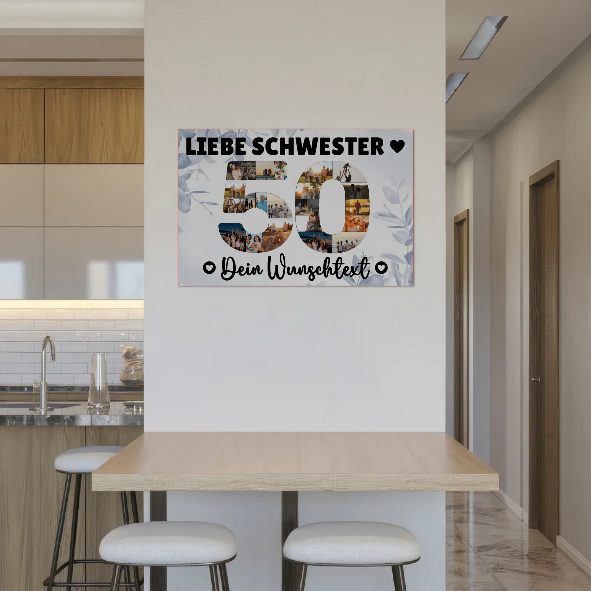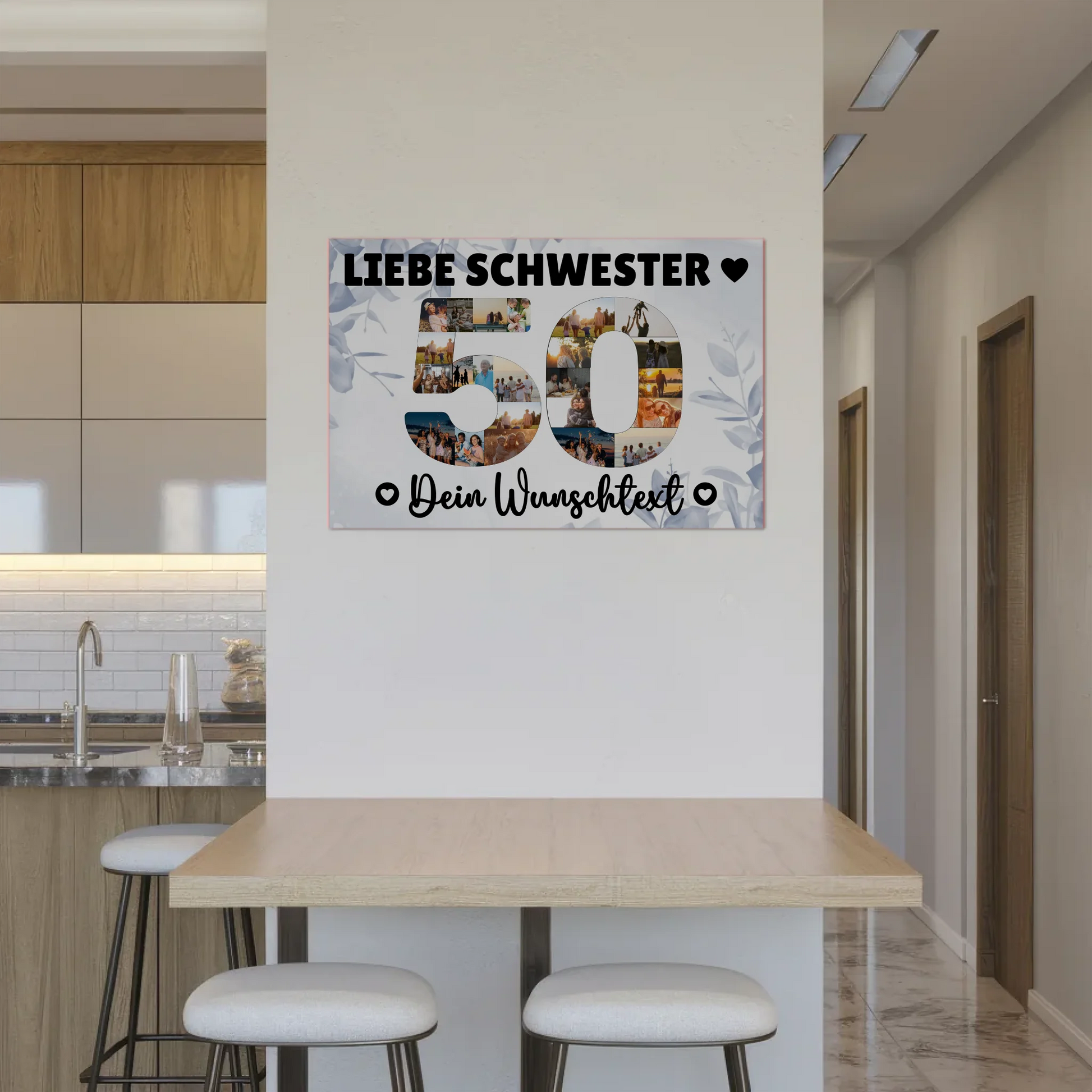 Schenke deiner Schwester etwas Einzigartiges mit unserem Magnet Poster mit Wunschtext. Mache ihren 50. Geburtstag zu einem unvergesslichen Erlebnis!