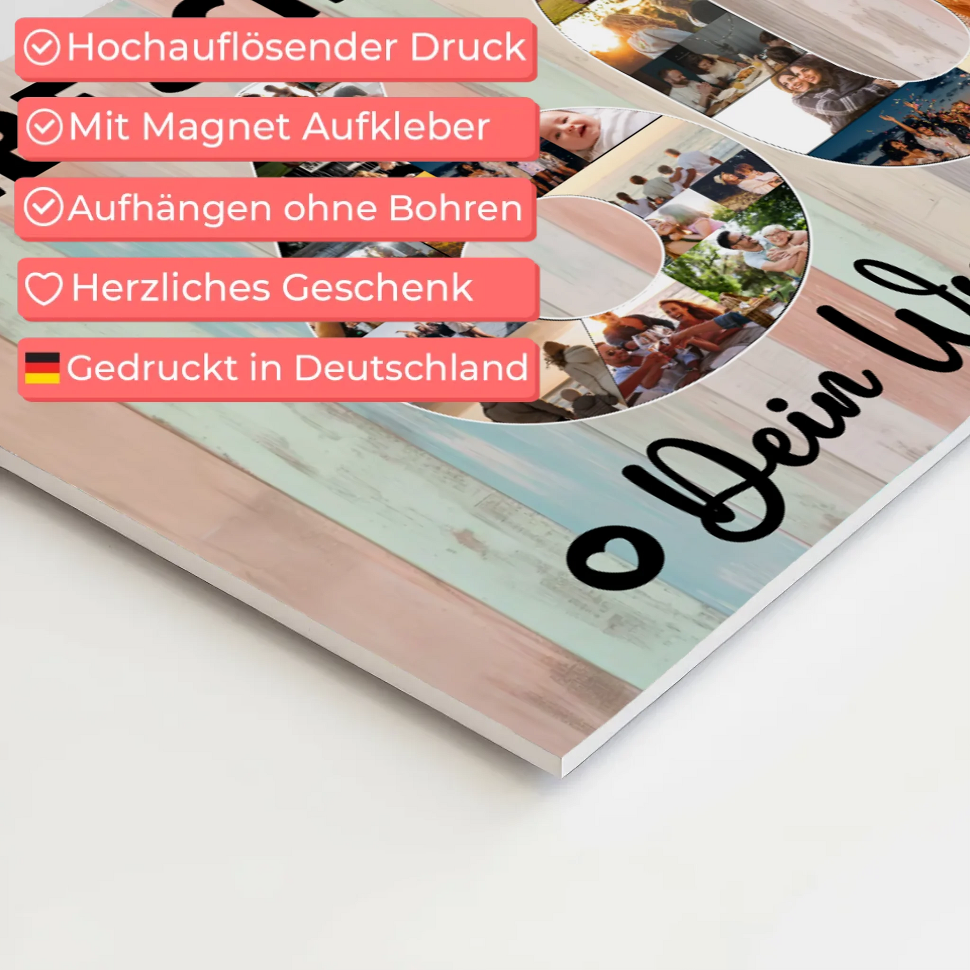 Entdecken Sie unser einzigartiges Fotoboard, das Ihre Lieblingsbilder in bestechender Qualität präsentiert. Die 5 mm dicke Hartschaumplatte mit matter Oberfläche sorgt für besondere optische Raffinesse; die weiße Kante mit rechtwinkligen Ecken bildet einen eleganten Rahmen. Dank hochwertigem Direktdruck erscheinen Ihre Fotos gestochen scharf und in brillanten Farben. Leicht und wandfreundlich - ideal für empfindliche Wände sowie Bereiche wie Küche oder Bad. Mit praktischem Magnet-Aufhängeset ganz einfach und ohne Bohren montiert.