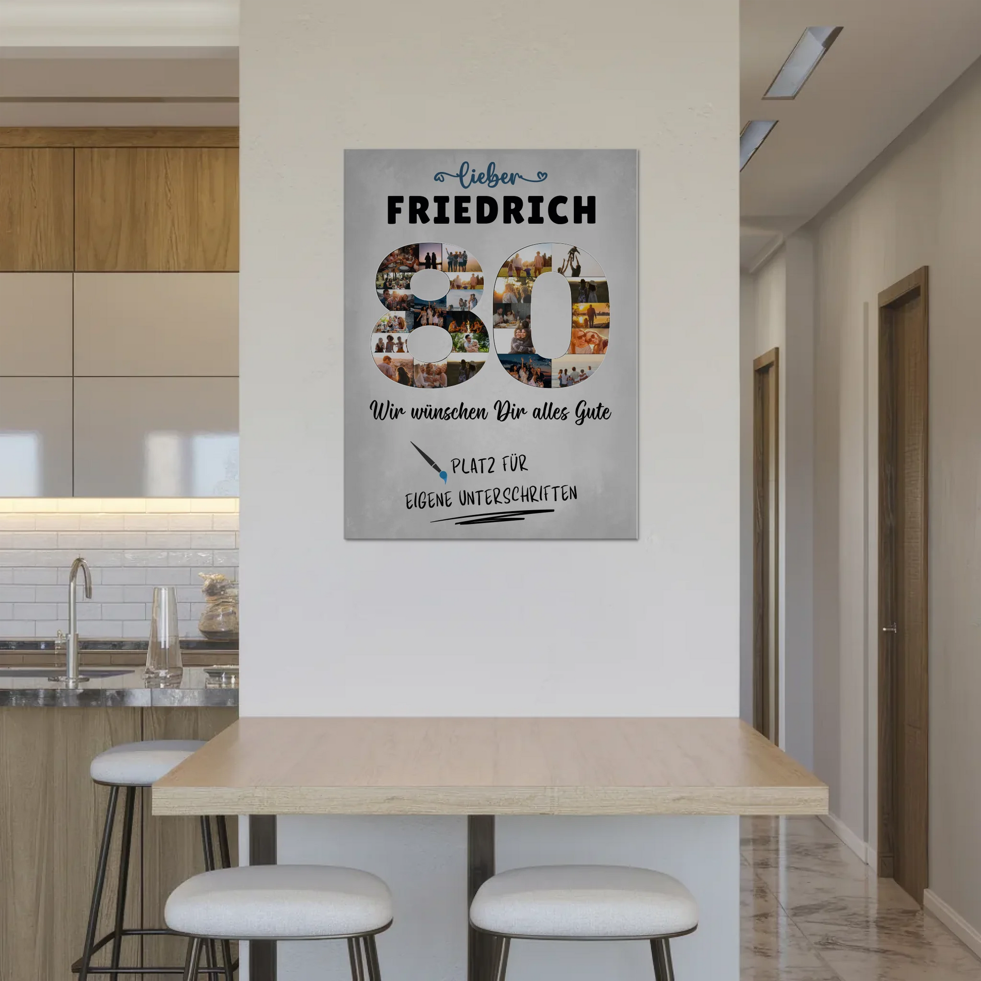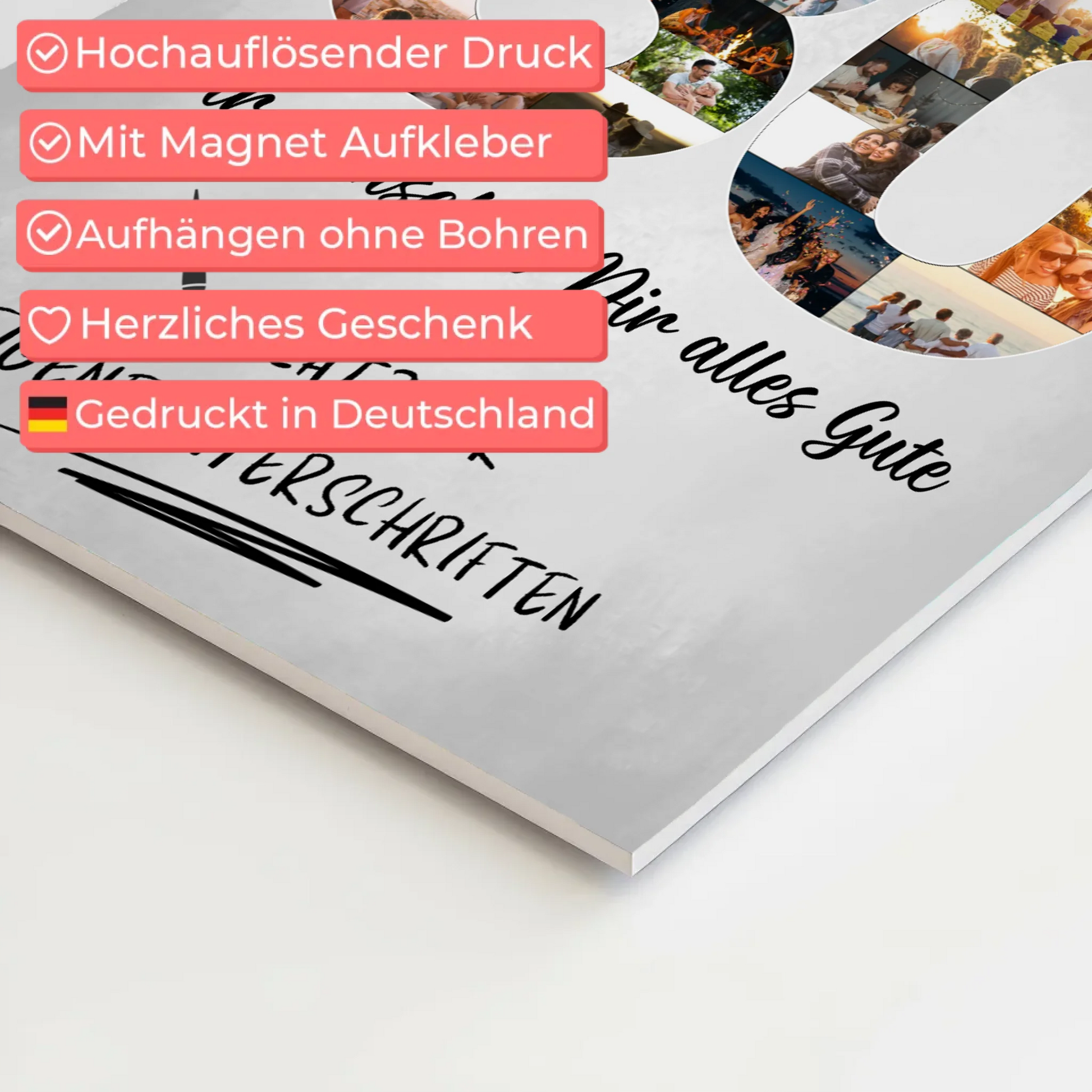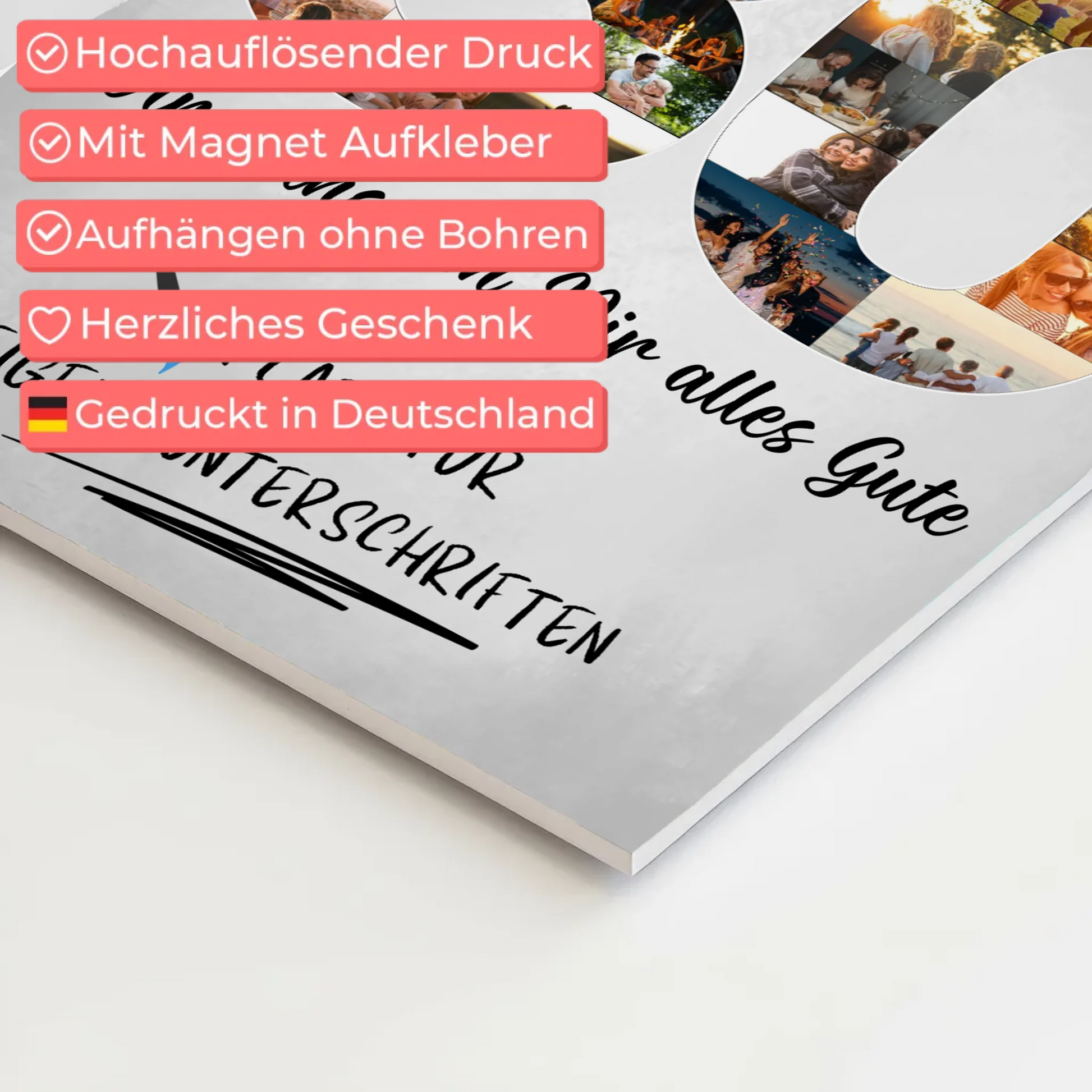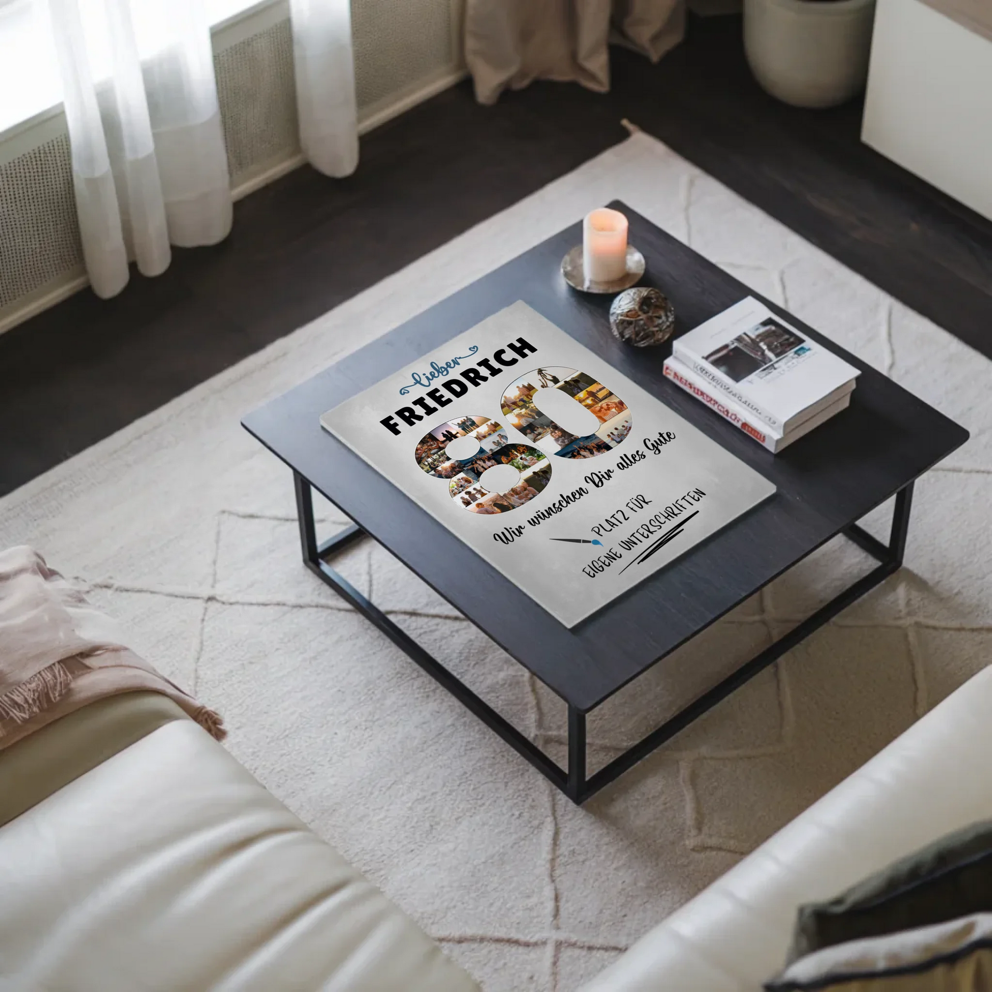 Feiere den 80. Geburtstag deines Lieblingsopa oder -papa mit einem einzigartigen Magnet Poster, das ganz auf seine Persönlichkeit abgestimmt ist! Mit unserem Magnet Poster mit Wunschtext kannst du über 20+ Fotos, deinen eigenen Spruch oder Wunschtext sowie Namen und eigene Unterschriften einfügen. So wird dieses Geschenk zu einem unvergesslichen Highlight bei der Feier!