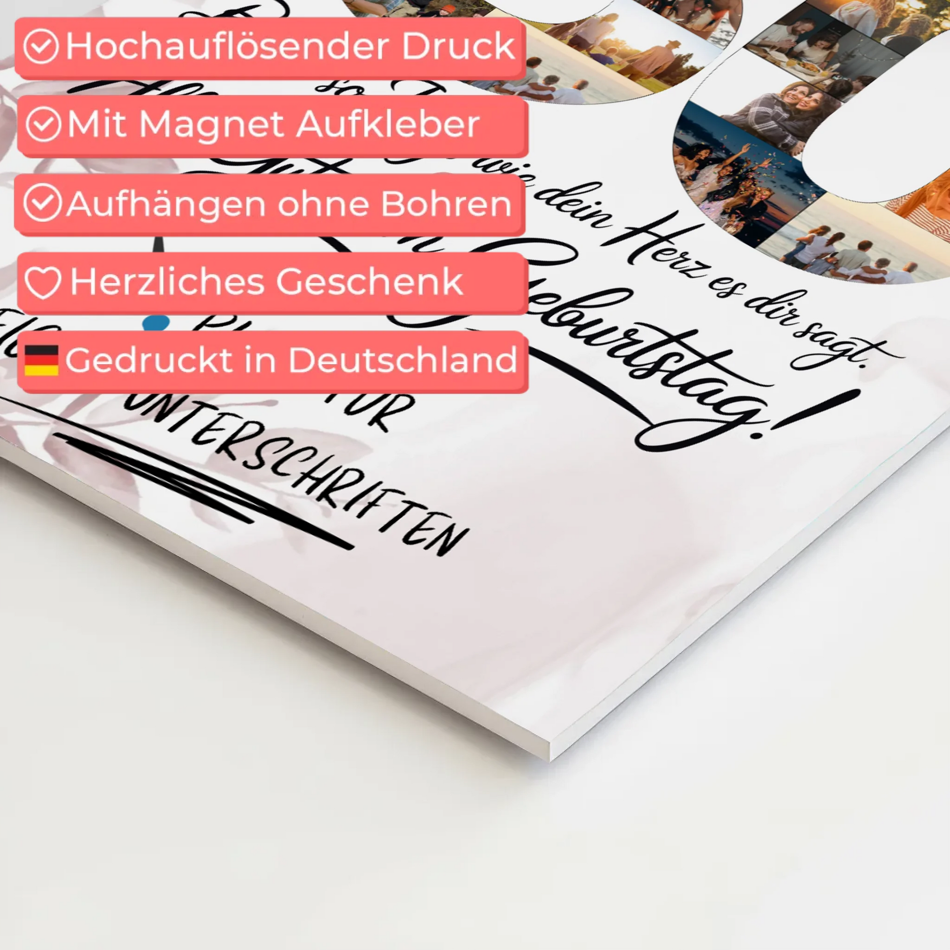 Entdecke das einzigartige Magnet Poster mit Wunschtext für den besonderen Anlass des 30. Geburtstags deiner Tochter! Dieses personalisierte Geschenk ist die perfekte Möglichkeit, um Erinnerungen festzuhalten und Herzen zu berühren. Mit über 20+ Fotos, einem eigenen Spruch oder Wunschtext, Namen oder sogar deiner persönlichen Unterschrift wird dieses Poster zum individuellen Highlight in jeder Wohnung.