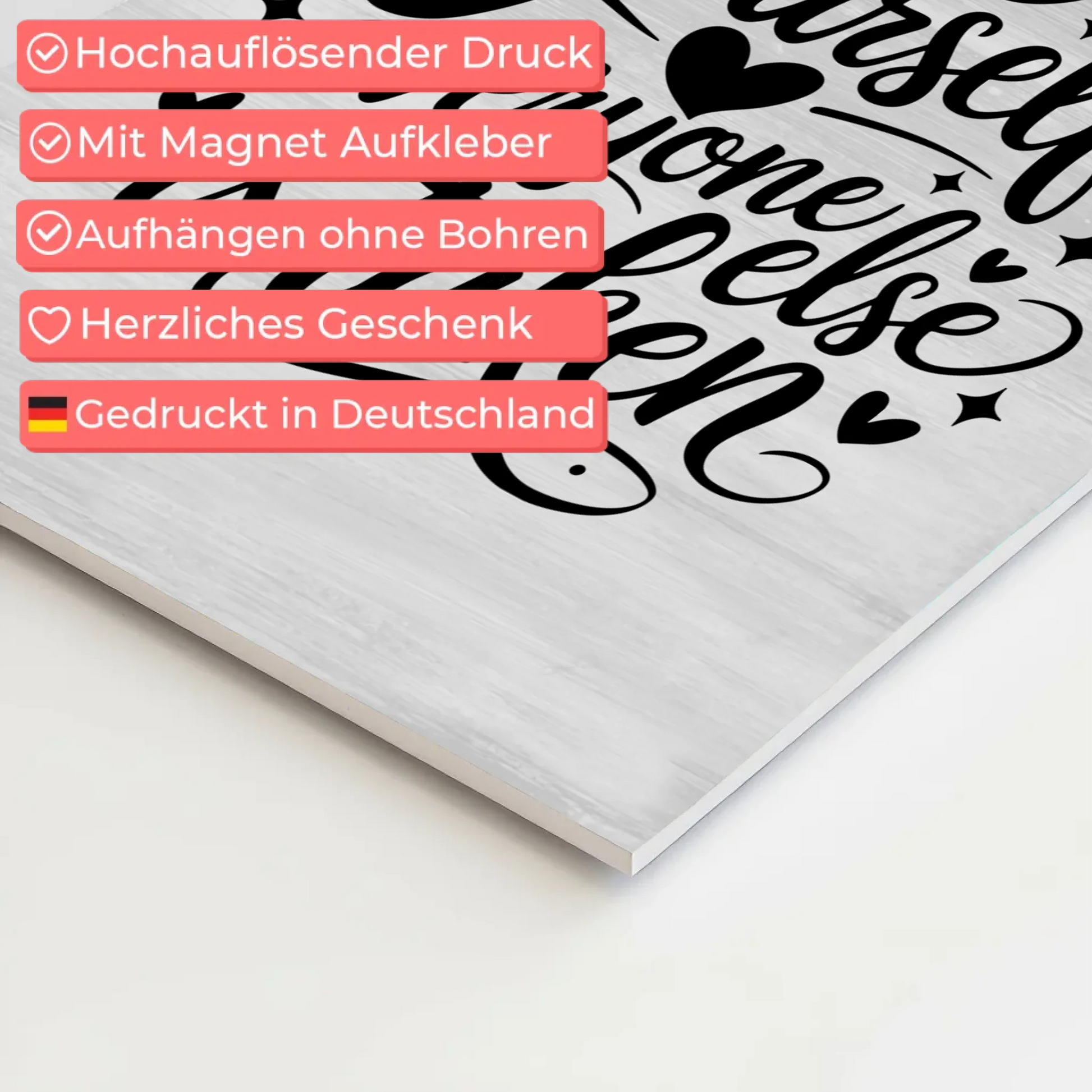 Entdecke das einzigartige Magnet Poster Spruch 'Be yourself, everyone else is taken' – ein perfektes Geschenk für jeden Anlass! Dieses personalisierbare Magnet Poster Fotoboard Mit Spruch ist nicht nur ein Hingucker, sondern auch eine inspirierende Erinnerung daran, sich selbst treu zu bleiben.