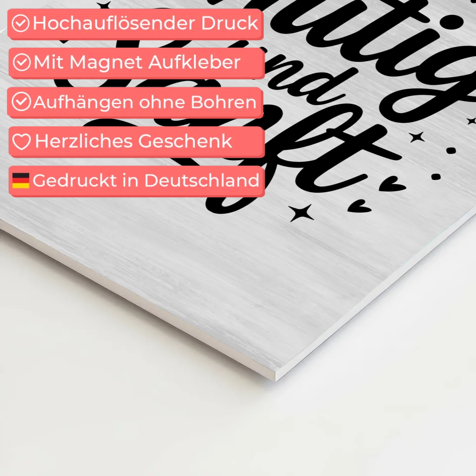 Mit dem Motivationssprüche Magnet Poster Fotoboard kannst du nicht nur deine Wände verschönern, sondern auch täglich neue Motivation schöpfen. Gestalte dein eigenes Magnet Poster Fotoboard mit Spruch selbst gestalten, indem du aus einer Vielzahl von Designs wählst und es nach deinen Vorstellungen anpasst. Der inspirierende Spruch 'Sei mutig und sanft' erinnert dich daran, Stärke mit Sanftmut zu kombinieren – eine Botschaft, die in jedem Raum positive Energie verbreitet.