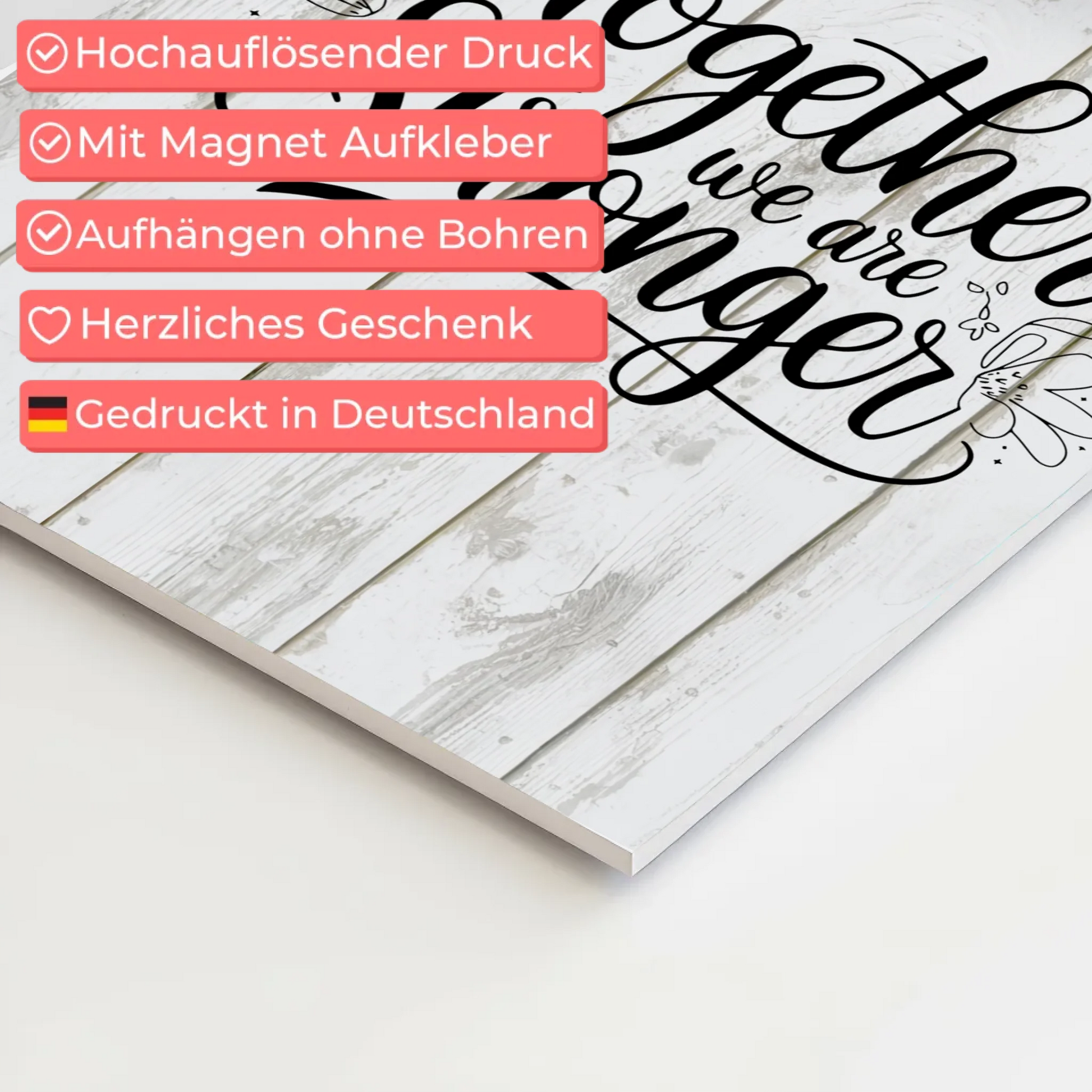 Entdecke das perfekte Geschenk für jeden Anlass mit unserem Magnet Poster Spruch Together we are stronger Geschenk. Dieses einzigartige Magnet Poster Fotoboard Mit Spruch ist nicht nur ein dekoratives Highlight, sondern auch eine inspirierende Botschaft für deine Liebsten. Personalisiere das Hintergrundbild und gestalte dein eigenes Magnet Poster Fotoboard mit Spruch selbst gestalten, um eine persönliche Note zu verleihen.