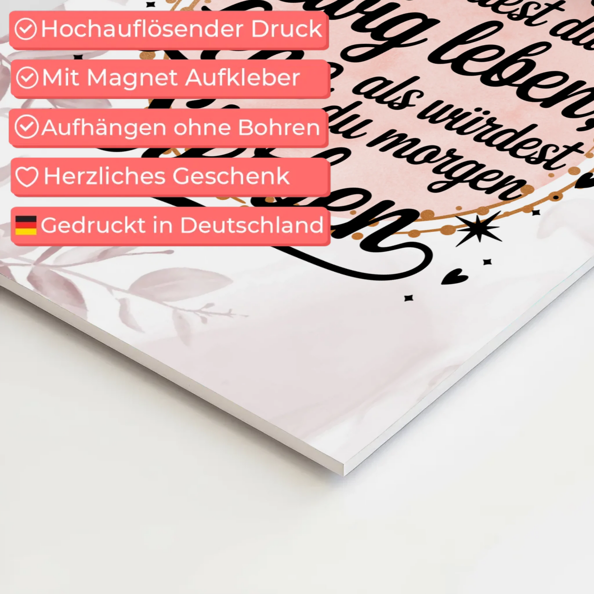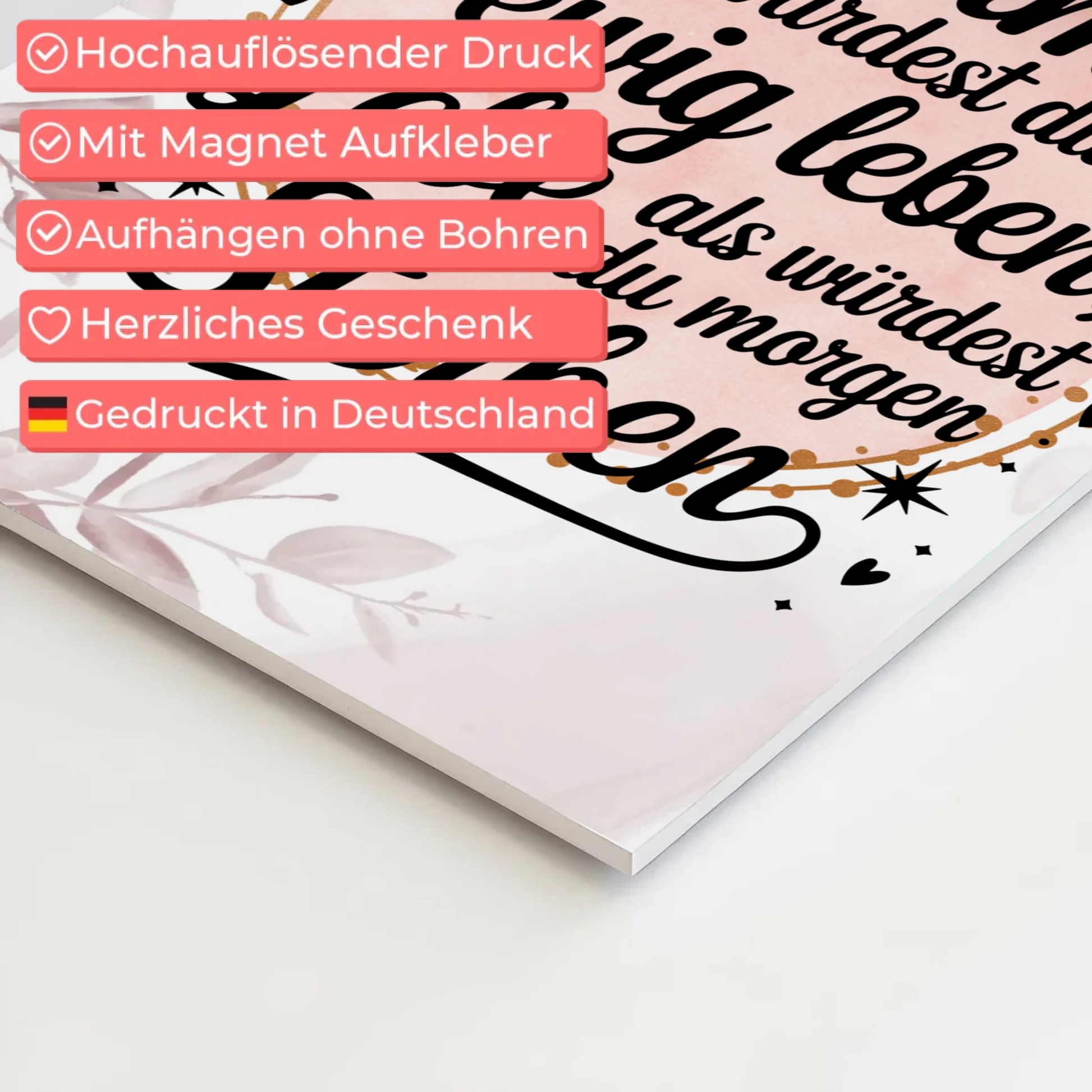 Magnet Poster Spruch Träume Lebe Ewig Leben Morgen Fotoboard