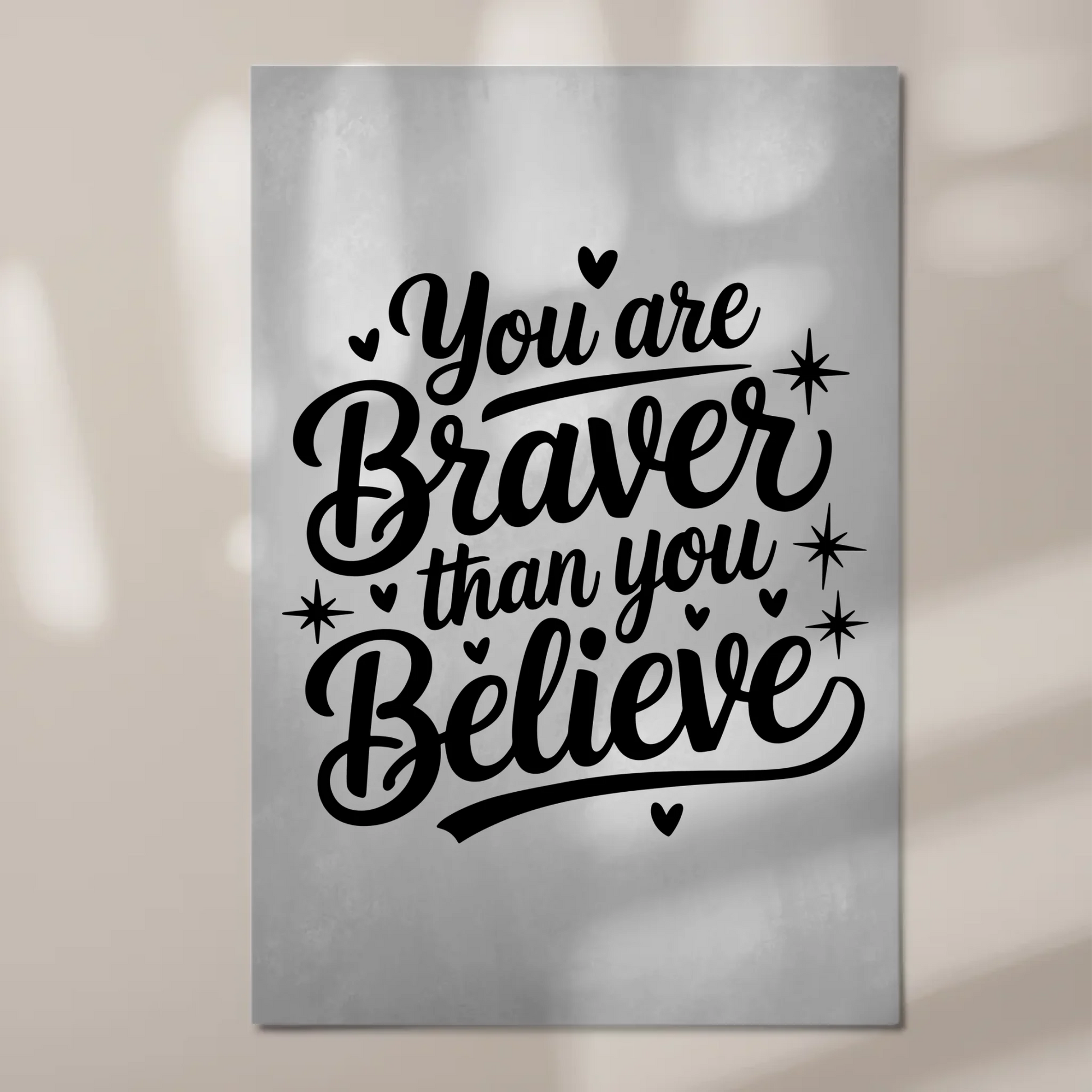 Lass dich von den kraftvollen Worten 'You are braver than you believe' täglich motivieren und inspirieren. Unser Motivationssprüche Magnet Poster Fotoboard ist mehr als nur Dekoration – es ist eine tägliche Erinnerung daran, dass du mutiger bist, als du denkst.
