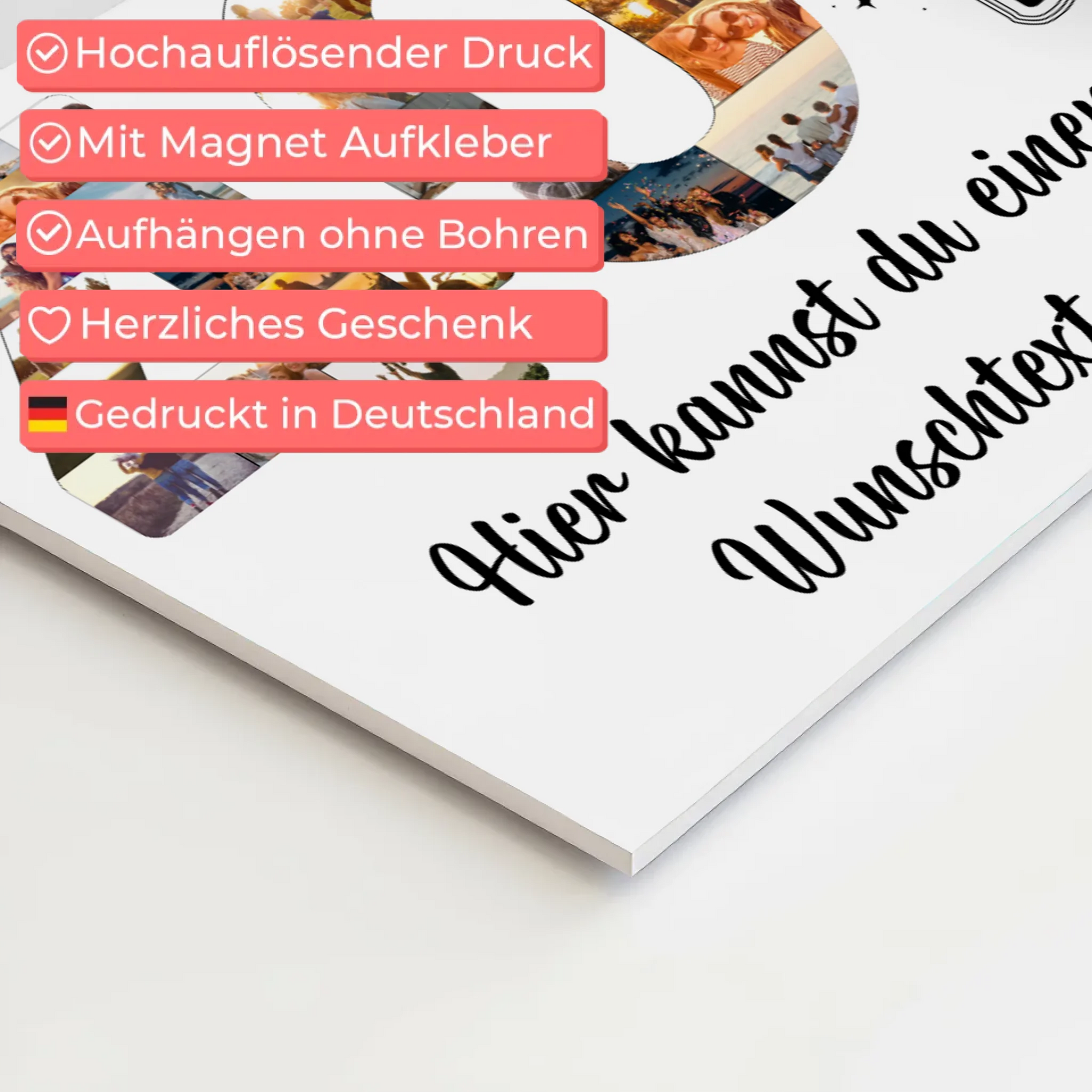 Suchst du nach einem einzigartigen und personalisierten Geschenk für den 40. Geburtstag? Unser Magnet Wandbild mit Unterschriften ist die ideale Wahl! Mit über 20+ Fotos, einem individuell wählbaren Hintergrundbild und deinem eigenen Spruch oder Wunschtext wird dieses Wandbild zum absoluten Blickfang.