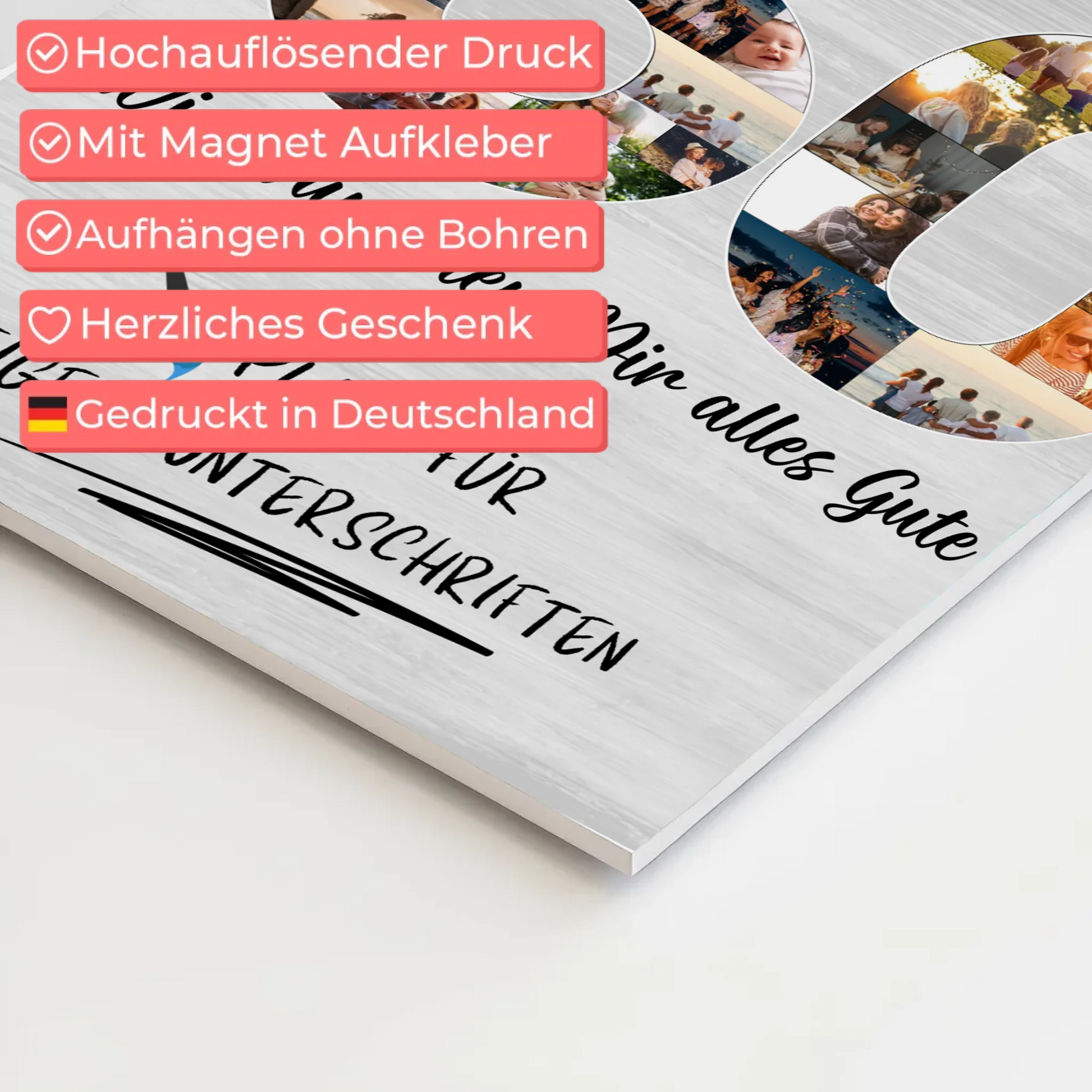 Feiere den 60. Geburtstag deiner liebsten Oma oder Mama mit einem ganz besonderen Geschenk – unserem Magnet Wandbild mit Unterschriften! Dieses einzigartige Produkt lässt sich individuell gestalten und sorgt für strahlende Augen an jedem Ehrentag. Verwandle wundervolle Erinnerungen in ein Kunstwerk, das bleibenden Eindruck hinterlässt.