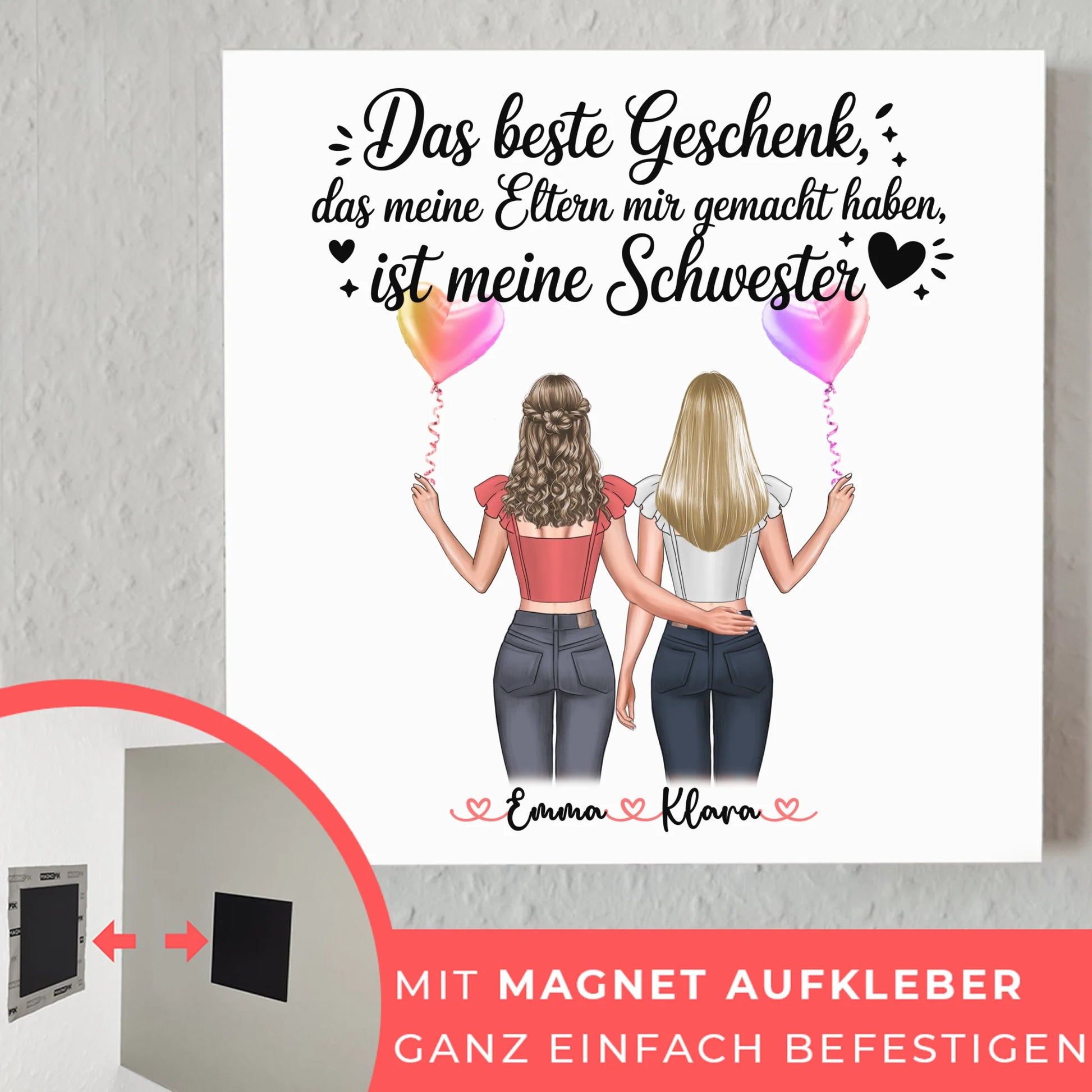 Magnet Wandbild Schwester personalisierbar mit 2 Clipart Frauen