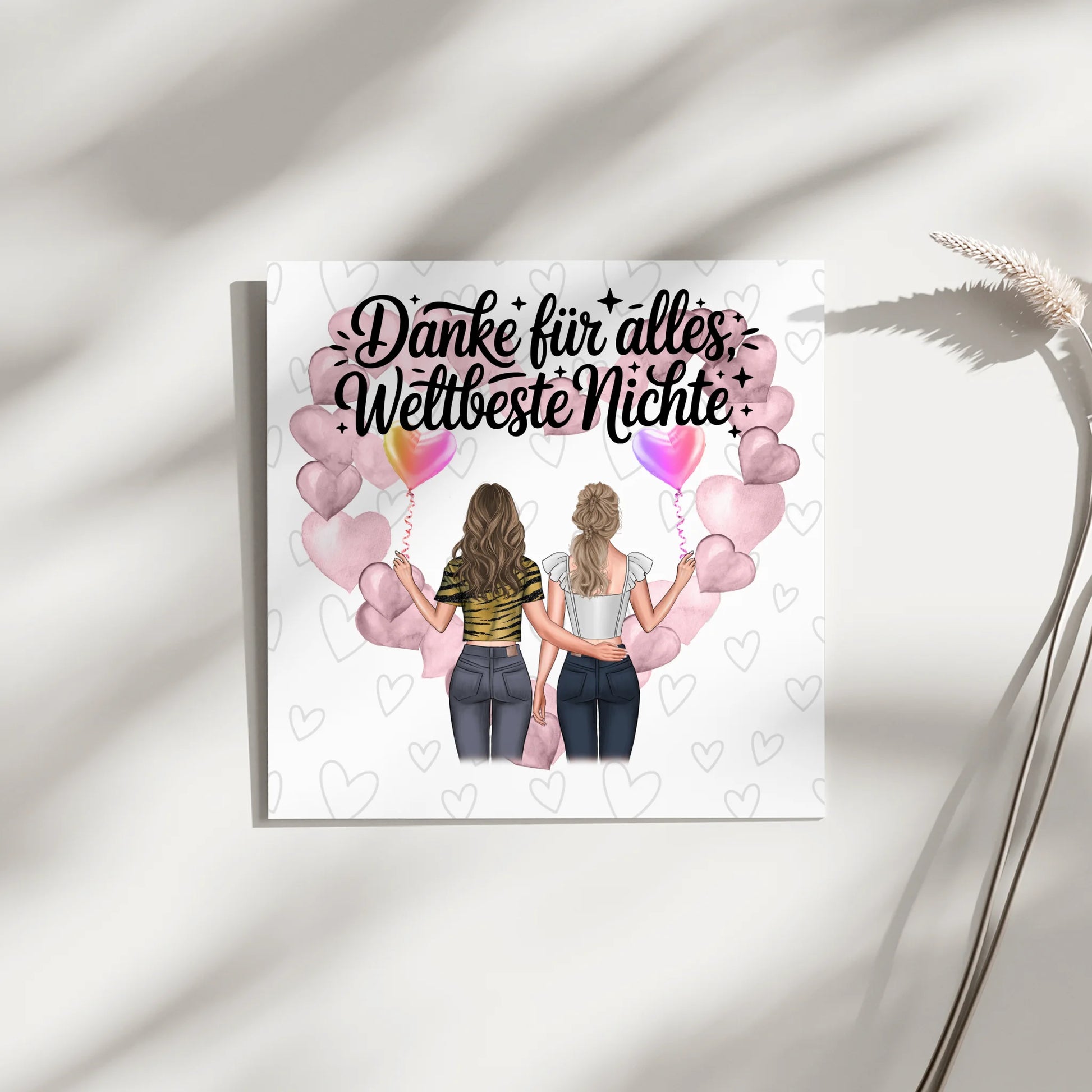 Magnetisches Fotoboard Beste Nichte danke für alles mit 2 Clipart Frauen, Namen & Spruch