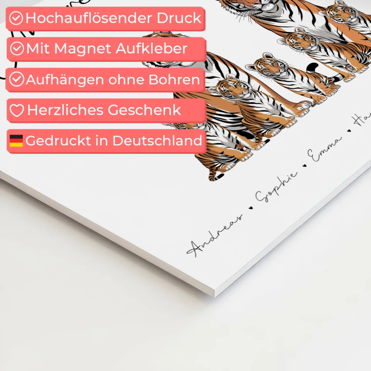 Magnetisches Fotoboard Familie Mit Namen Tiger Familienporträt Geschenk für Mama Papa Oma Opa
