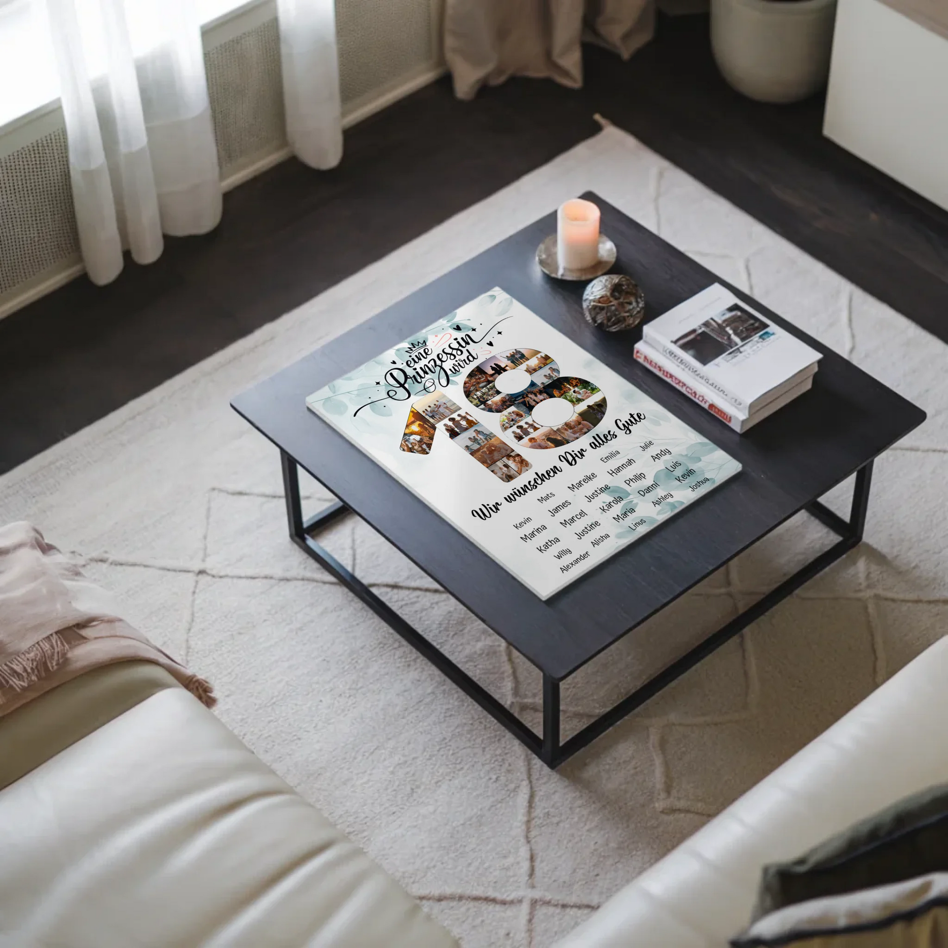 Feiere den besonderen 18. Geburtstag mit unserem einzigartigen magnetischen Fotoboard mit Unterschriften! Dieses personalisierte Geschenk ist das perfekte Erinnerungsstück für eine Prinzessin, die einen neuen Lebensabschnitt beginnt. Du kannst über 20+ Fotos hinzufügen und das Board ganz nach deinem Geschmack gestalten.