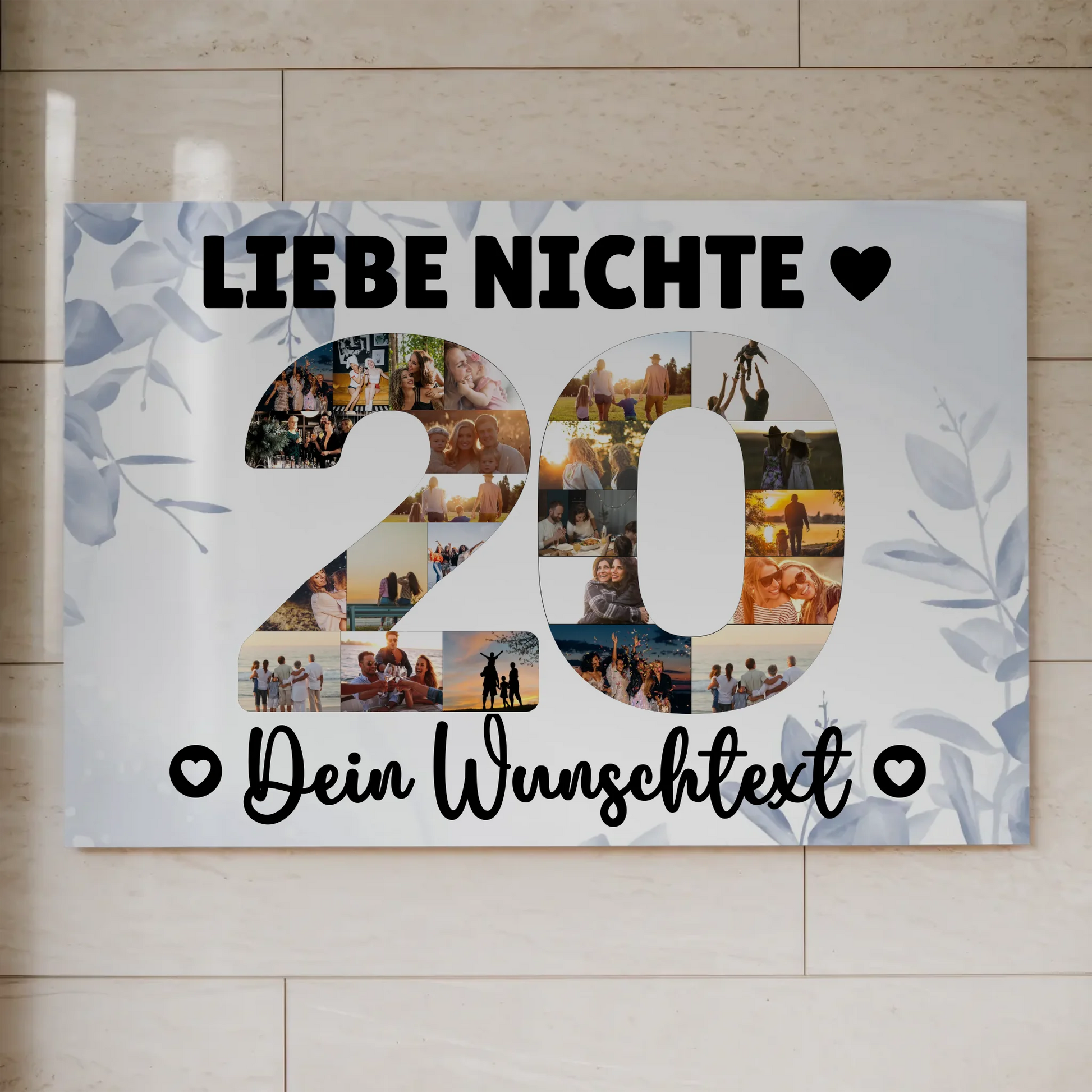 Magnetisches Fotoboard mit Unterschriften zum 20. Geburtstag deiner Nichte