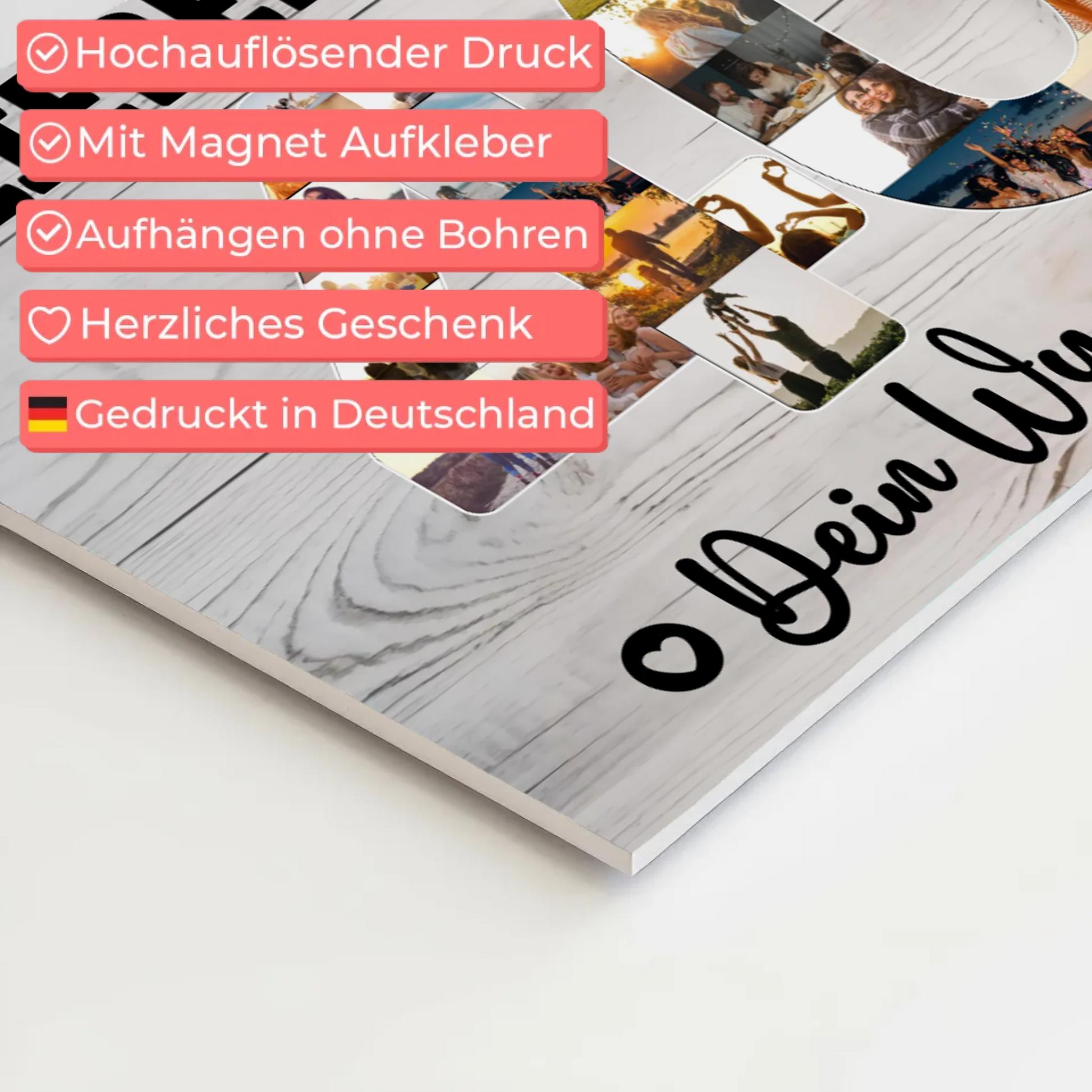 Entdecken Sie unser einzigartiges Fotoboard, das Ihre Lieblingsbilder in bestechender Qualität präsentiert. Die 5 mm dicke Hartschaumplatte mit matter Oberfläche sorgt für besondere optische Raffinesse; die weiße Kante mit rechtwinkligen Ecken bildet einen eleganten Rahmen. Dank hochwertigem Direktdruck erscheinen Ihre Fotos gestochen scharf und in brillanten Farben. Leicht und wandfreundlich - ideal für empfindliche Wände sowie Bereiche wie Küche oder Bad. Mit praktischem Magnet-Aufhängeset ganz einfach und ohne Bohren montiert.