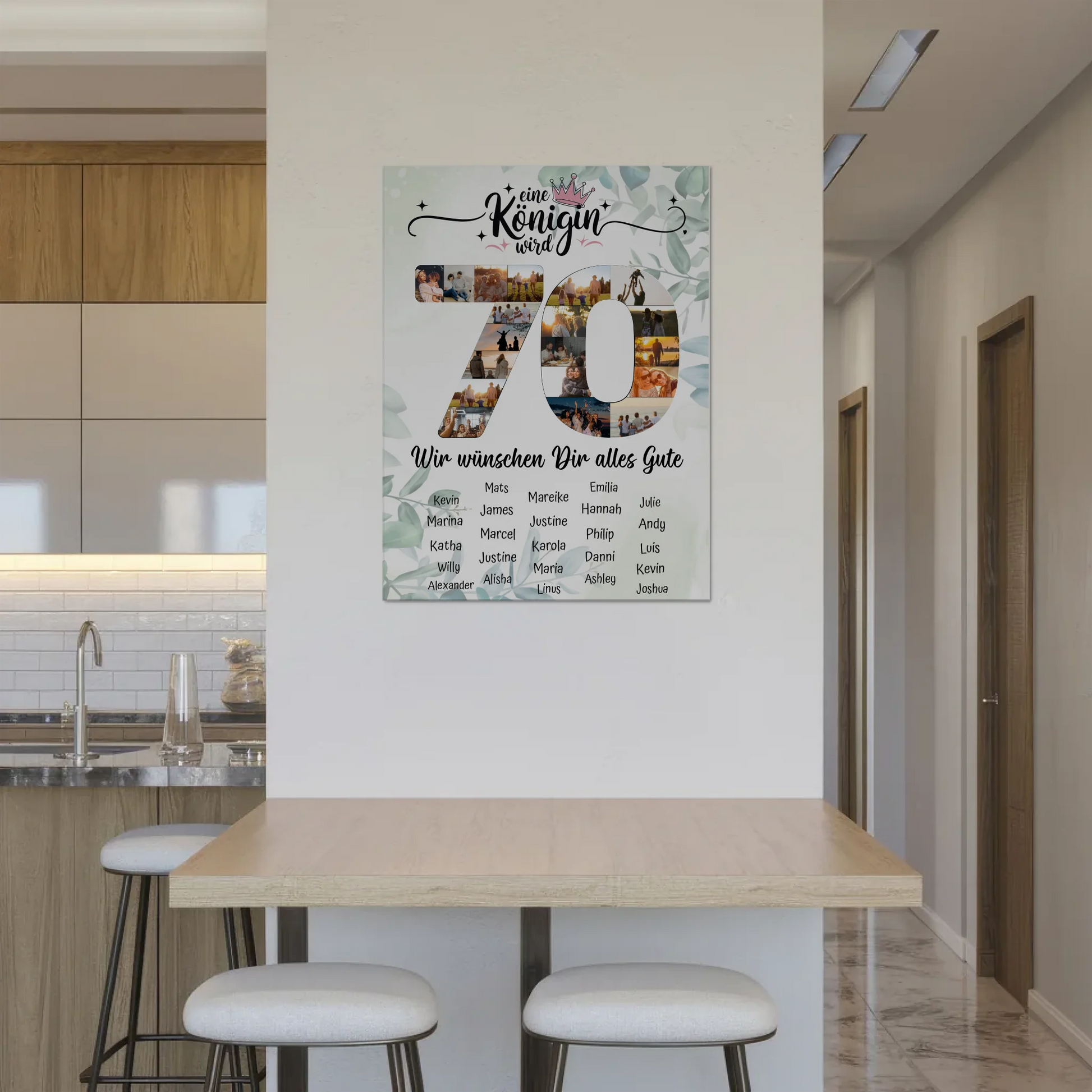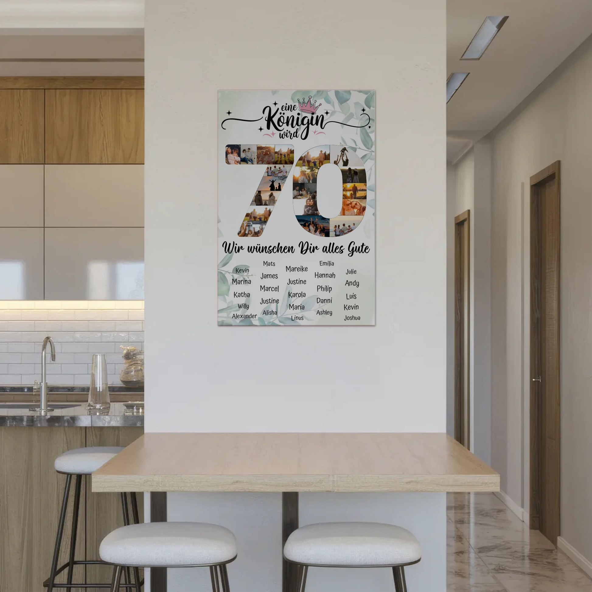 Suchst du nach dem perfekten Geschenk für den 70. Geburtstag einer besonderen Frau in deinem Leben? Unser magnetisches Fotoboard mit Unterschriften ist die ideale Wahl, um Erinnerungen auf eine einzigartige Weise zu feiern. Überrasche deine Mama, Oma, Schwester, beste Freundin, Tante oder Schwiegermama mit einem personalisierten Kunstwerk, das sie nie vergessen wird!