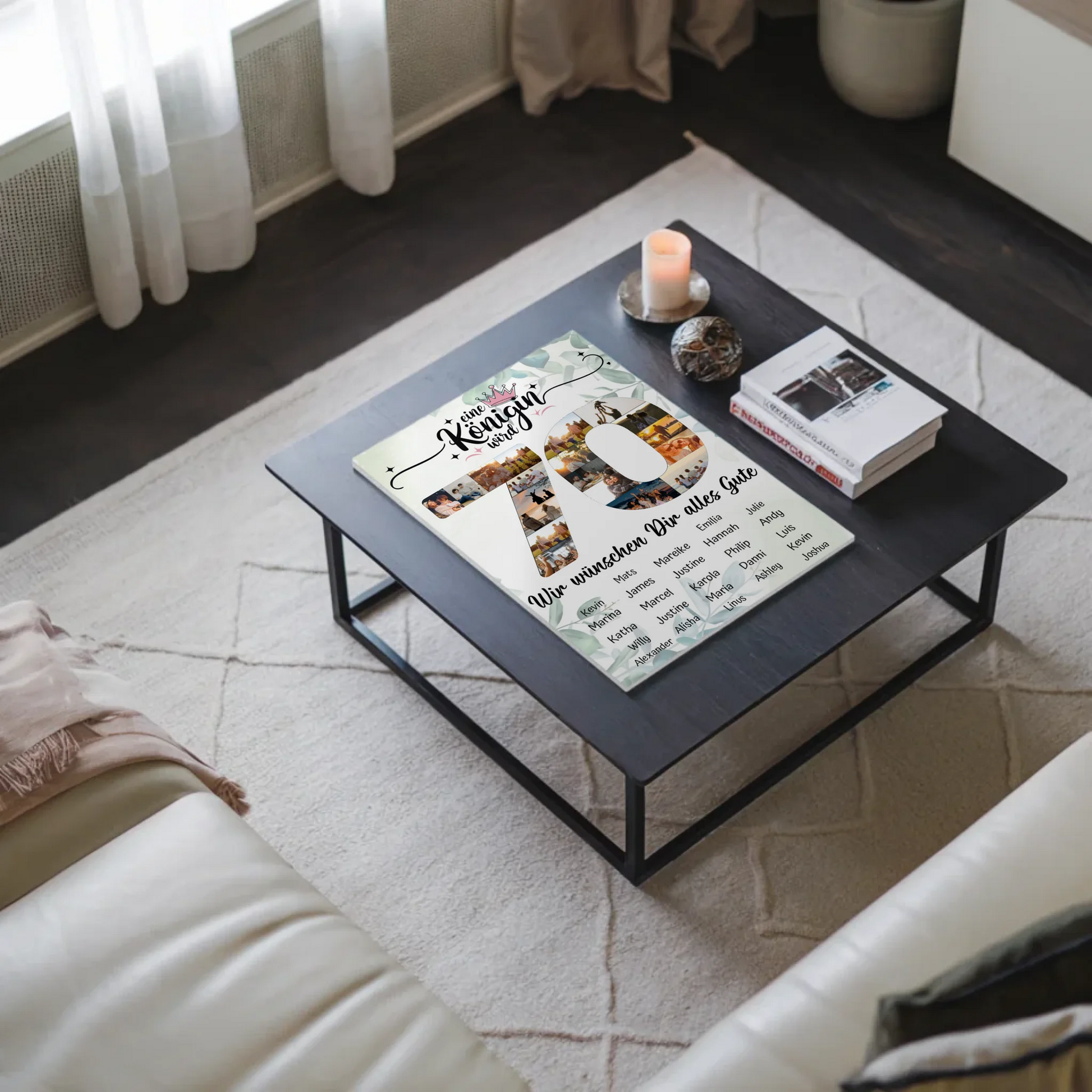 Egal ob für Mamas, Omas oder beste Freundinnen - unser Fotoboard ist die optimale Geschenkidee für unvergessliche Geburtstagsfeiern. Besonders zum 70. Geburtstag, wenn eine Königin gefeiert wird! Das persönliche Design macht dieses Geschenk zu etwas ganz Besonderem und verleiht jeder Feier einen Hauch von Individualität.
