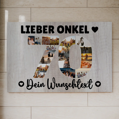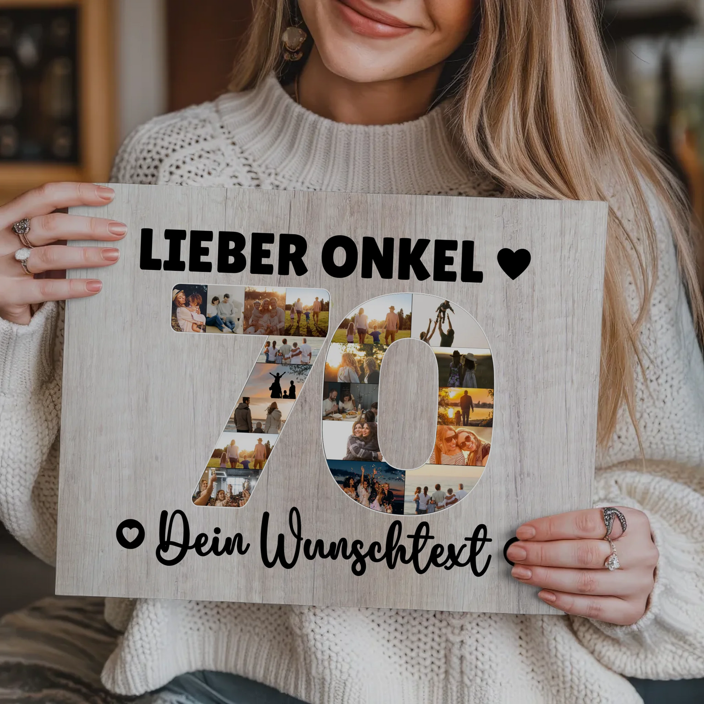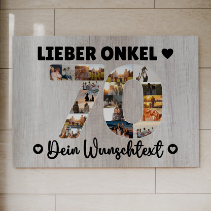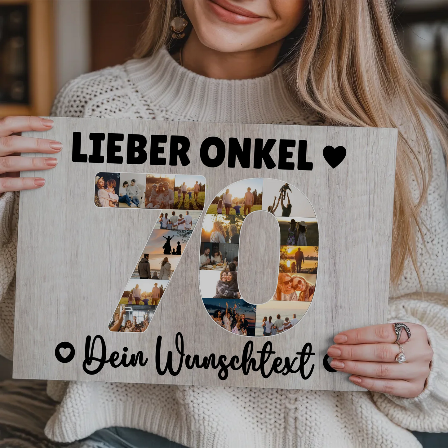 Bestelle jetzt dein personalisiertes magnetisches Fotoboard mit Unterschriften und bereite deinem Onkel eine unvergessliche Überraschung zu seinem 70. Geburtstag – ein Geschenk, das von Herzen kommt!
