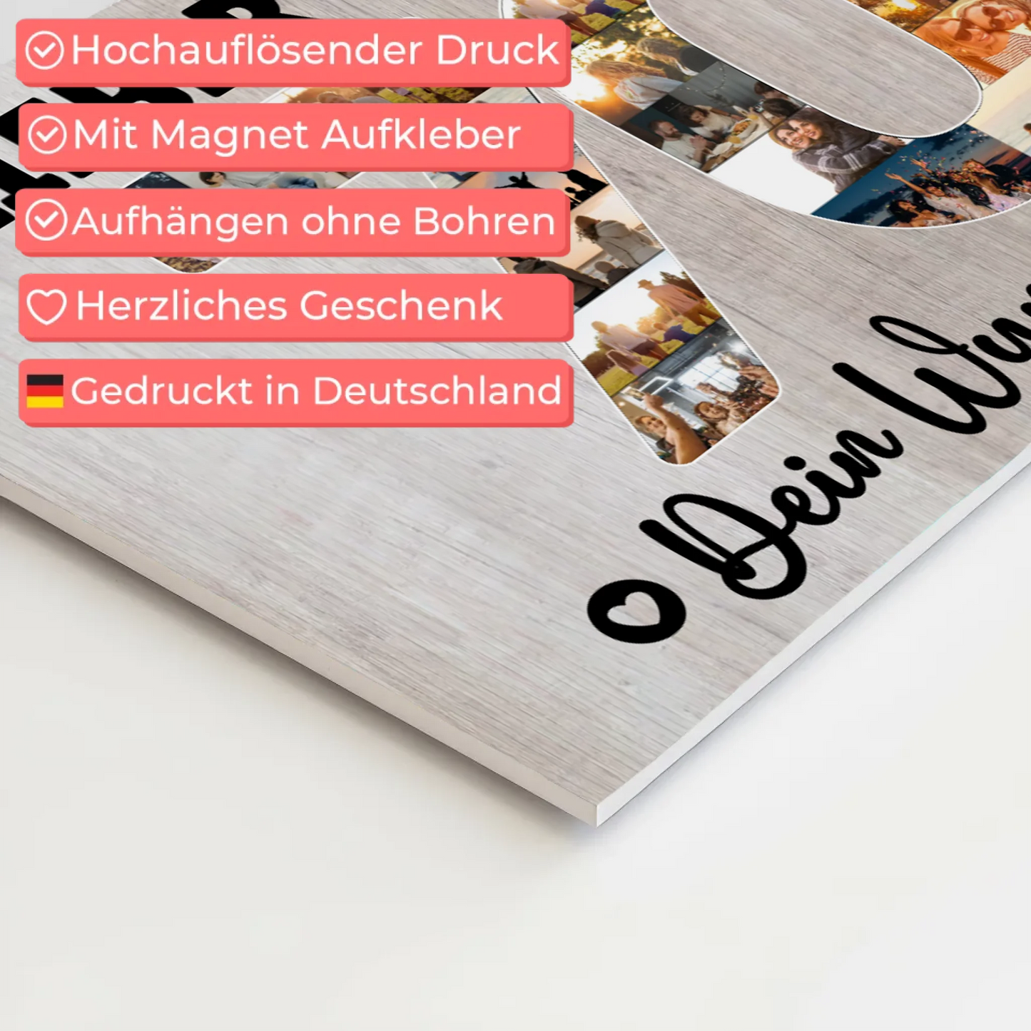 Mit dem magnetischen Fotoboard kannst du nicht nur den Namen deines Onkels einfügen, sondern auch einen eigenen Spruch oder Wunschtext gestalten, der seine Persönlichkeit widerspiegelt. Wähle ein passendes Hintergrundbild, um das Geschenk noch individueller zu gestalten. Dieses kreative Fotoboard vereint Bild und Wort in einem kunstvollen Arrangement.