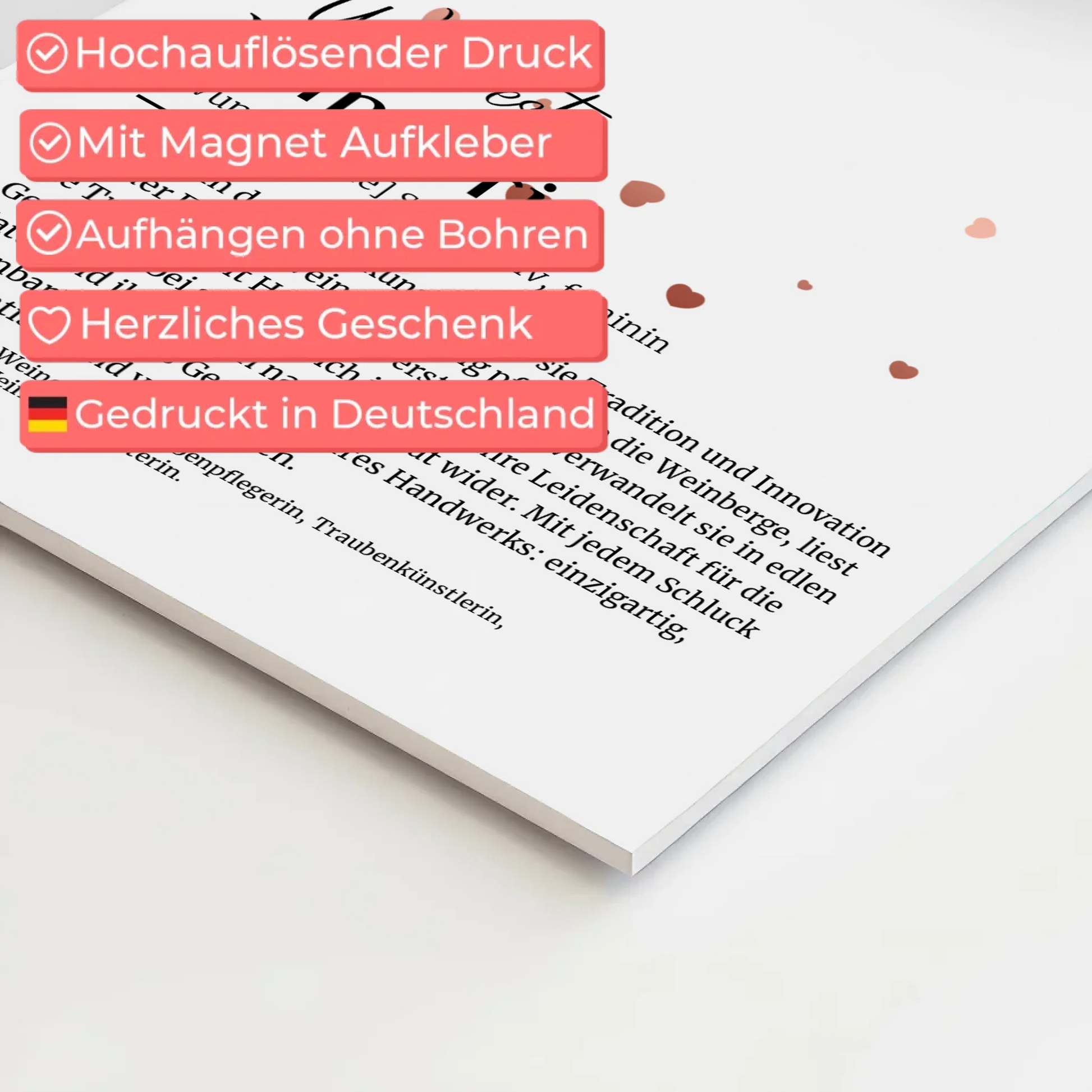 Magnetisches Poster Winzerin mit Namen Geschenkidee