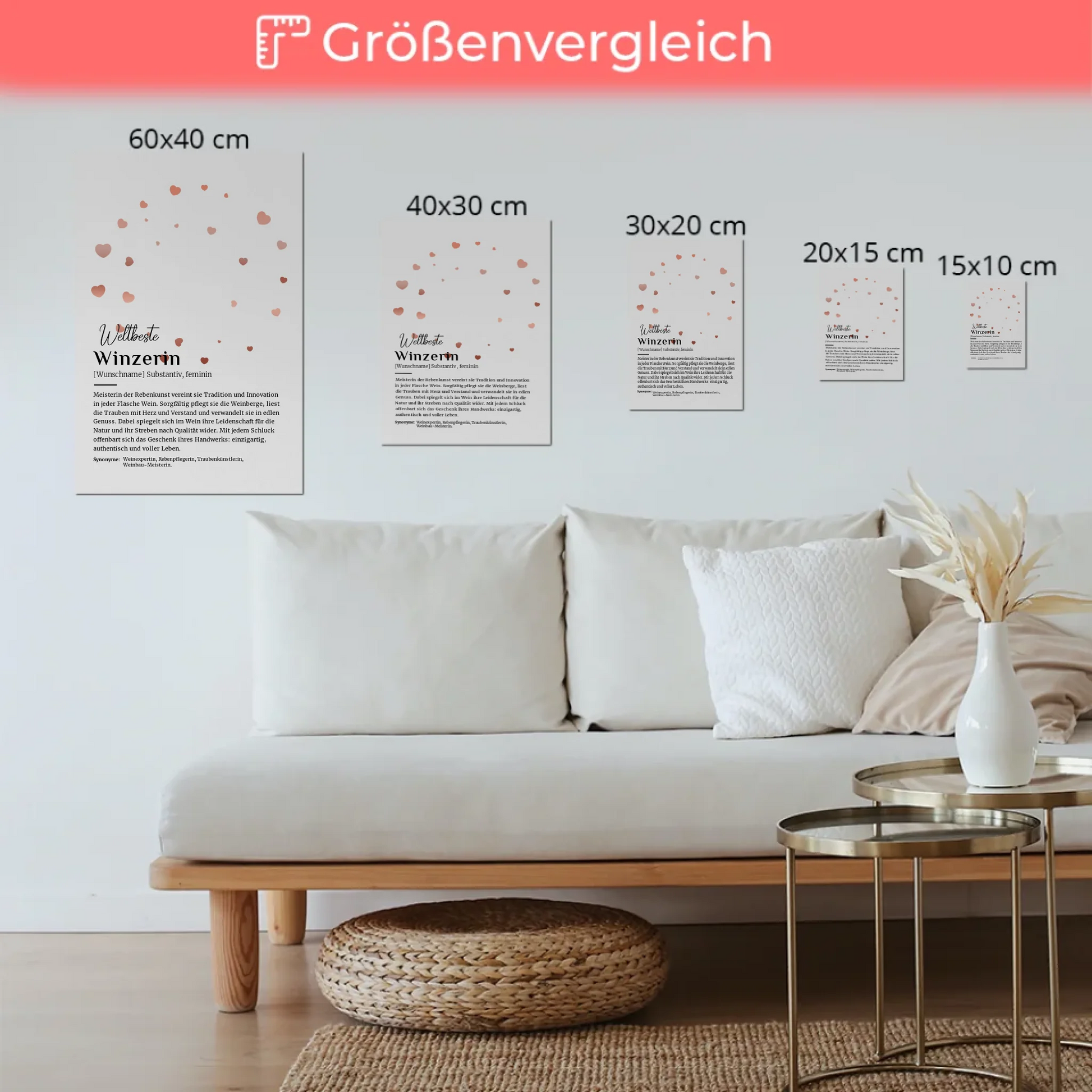 Entdecke das perfekte personalisierte Geschenk für alle Weinliebhaber: unser Magnetisches Poster Winzerin mit Namen Geschenkidee. Dieses einzigartige Poster ist nicht nur ein echter Hingucker, sondern auch eine kreative Möglichkeit, einem besonderen Menschen eine Freude zu machen. Du kannst den Namen und das Hintergrundbild individuell anpassen, um ein wirklich persönliches Präsent zu gestalten.