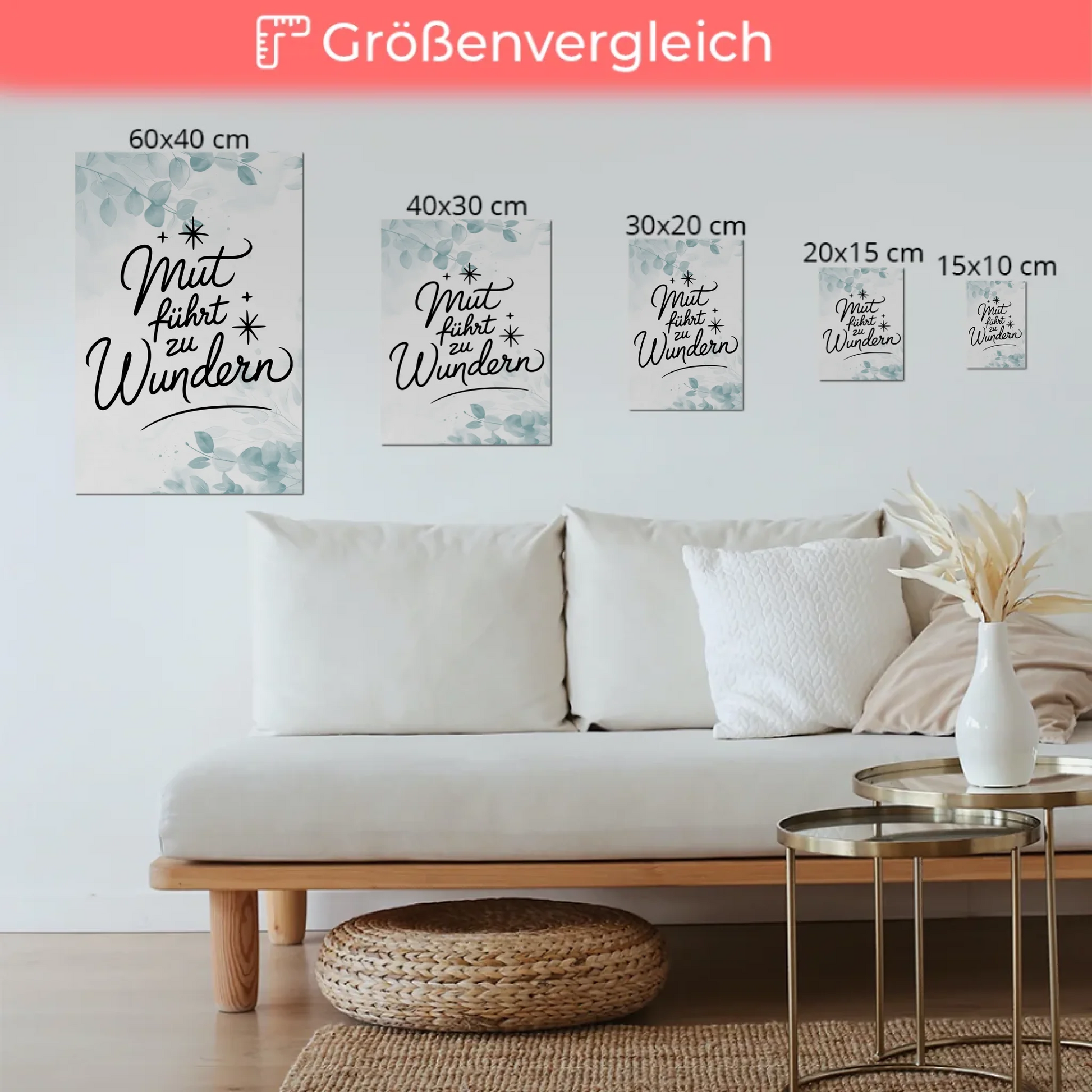 Unser Sprüche Poster Magnetisch Affirmation ist nicht nur ein dekoratives Highlight, sondern auch ein täglicher Motivationsschub. Mit dem inspirierenden Spruch 'Mut führt zu Wundern' erinnert es dich daran, dass positive Veränderungen möglich sind. Die Kombination aus Affirmationen Magnet Poster Fotoboard und einem schönen Spruch macht es zu einer idealen Geschenkidee.