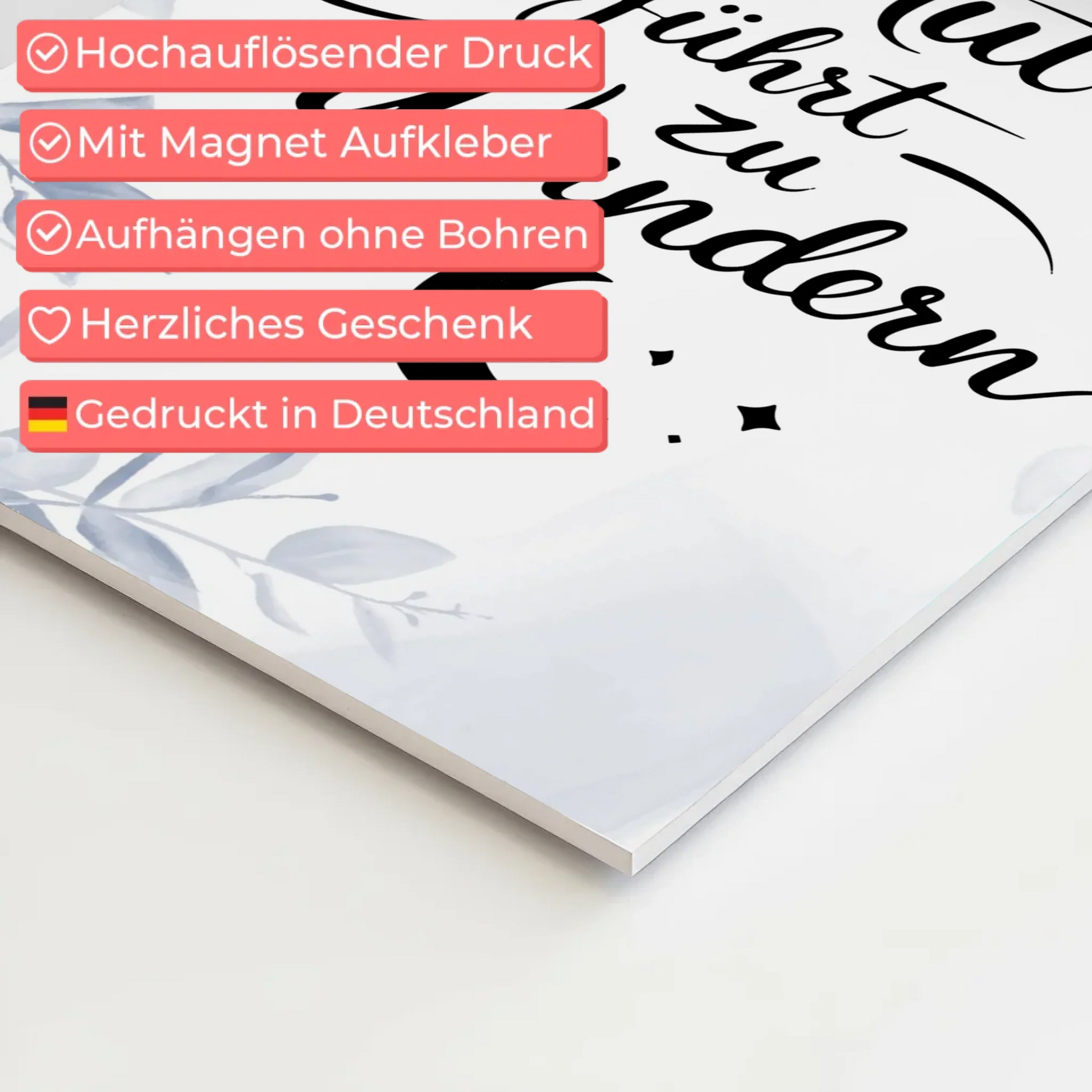 Mit inspirierenden Botschaften wie 'Mut führt zu Wundern' bringt unser Sprüche Poster Magnetisch Affirmation positive Energie in deinen Alltag. Die Kombination aus schöner Spruch, Motivation, und positive affirmation macht es zum idealen Begleiter für deine täglichen Affirmationen.