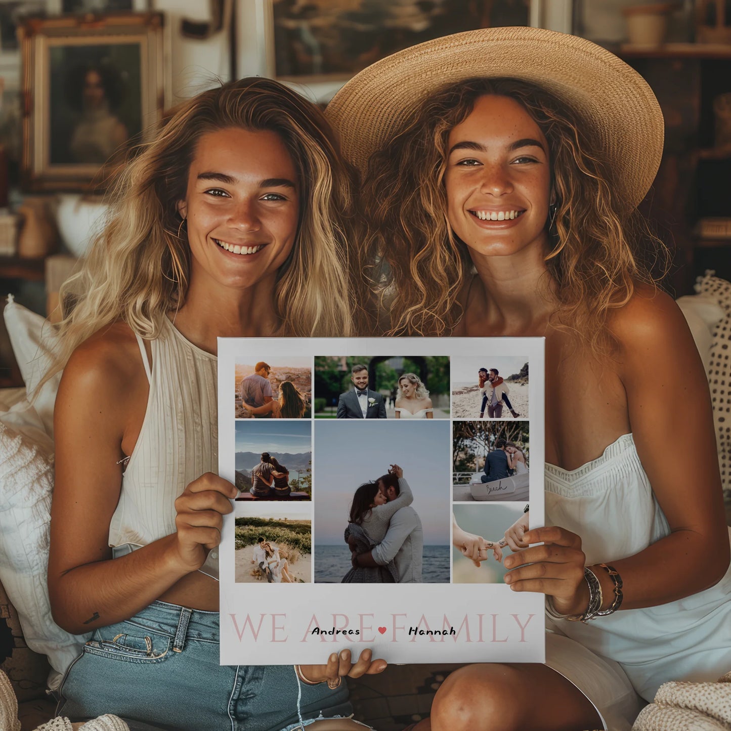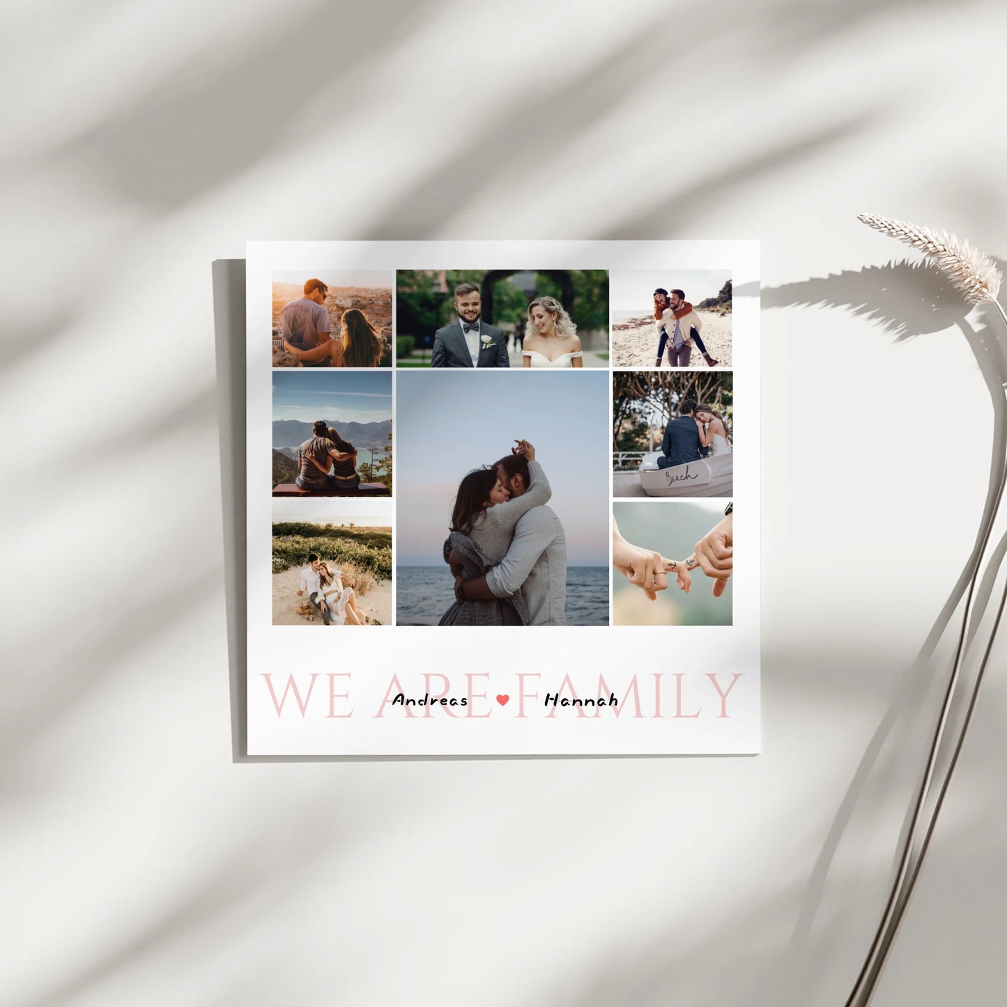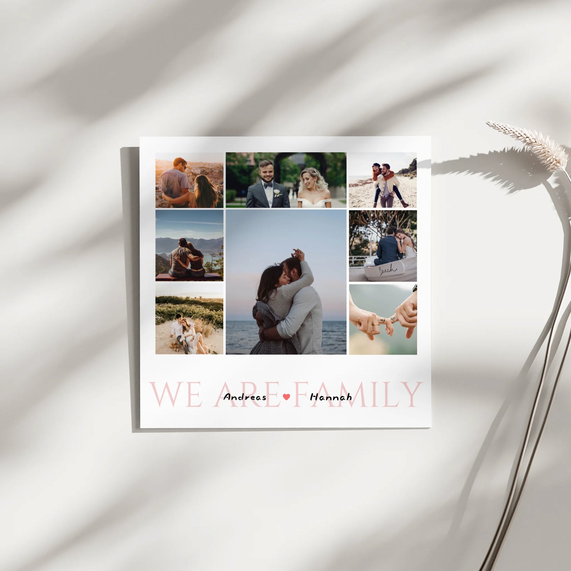 Du kannst bei diesem schönen Design 8 Fotos & Namen ganz individuell personalisieren.