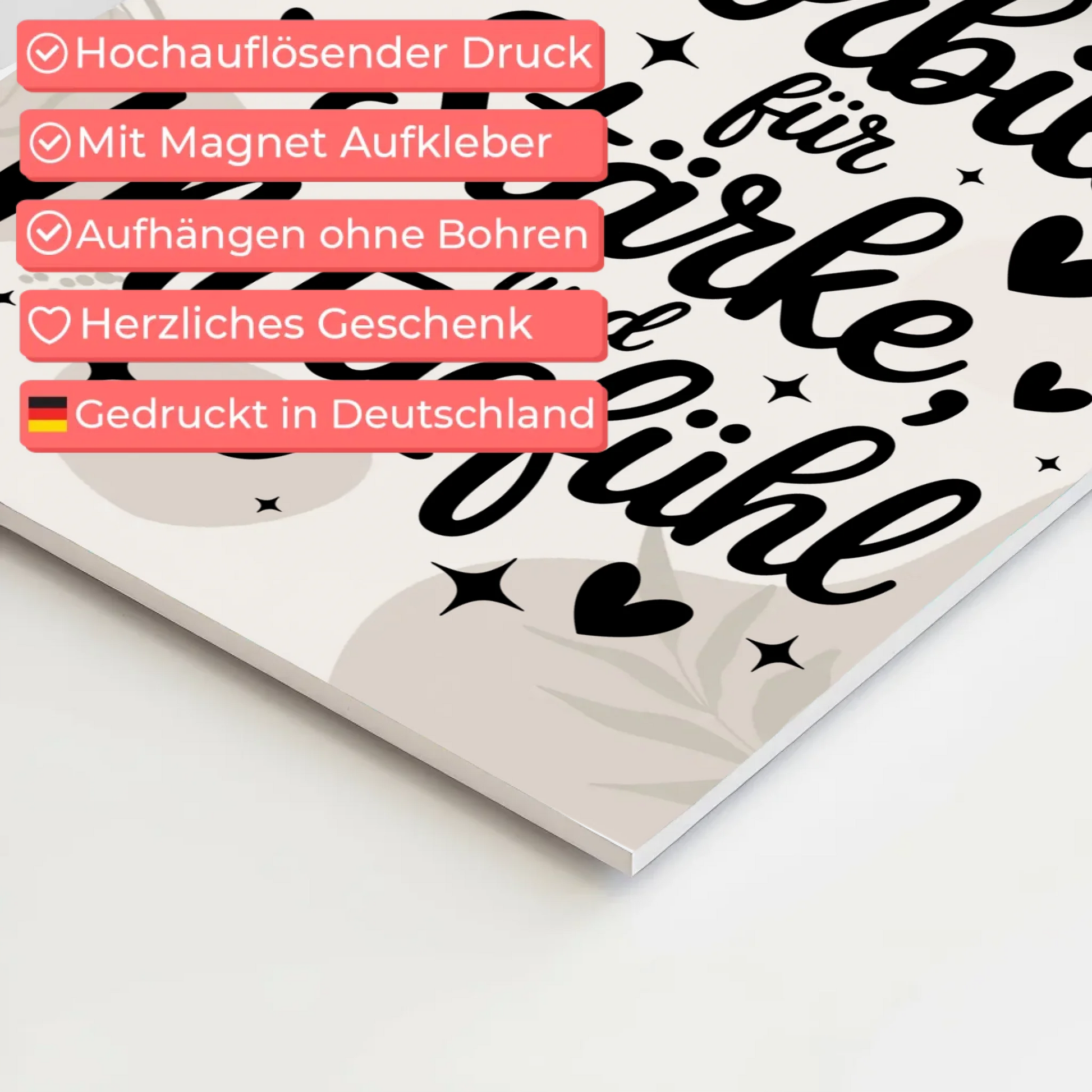 Entdecke das perfekte Geschenk für jeden Anlass: das Magnetische Wandbild Spruch Affirmation Vorbild Liebe. Dieses einzigartige Produkt kombiniert inspirierende Worte mit einem personalisierbaren Hintergrundbild, um eine persönliche und motivierende Atmosphäre zu schaffen. Egal ob als tägliche Erinnerung oder als stilvolles Dekor, dieses Wandbild ist ein echter Hingucker.