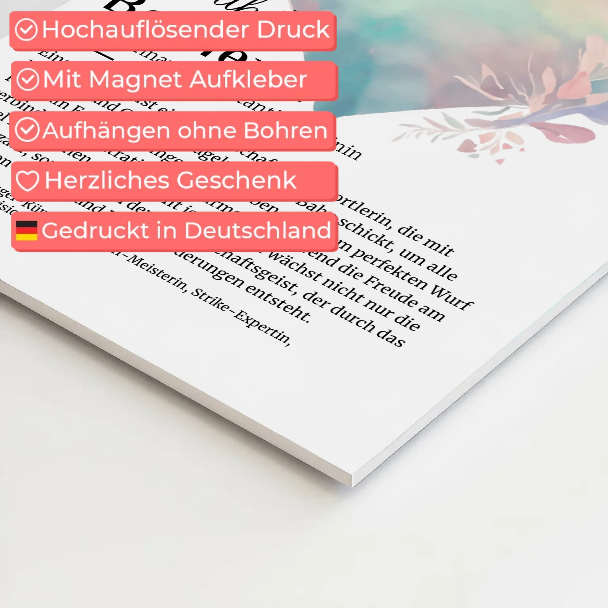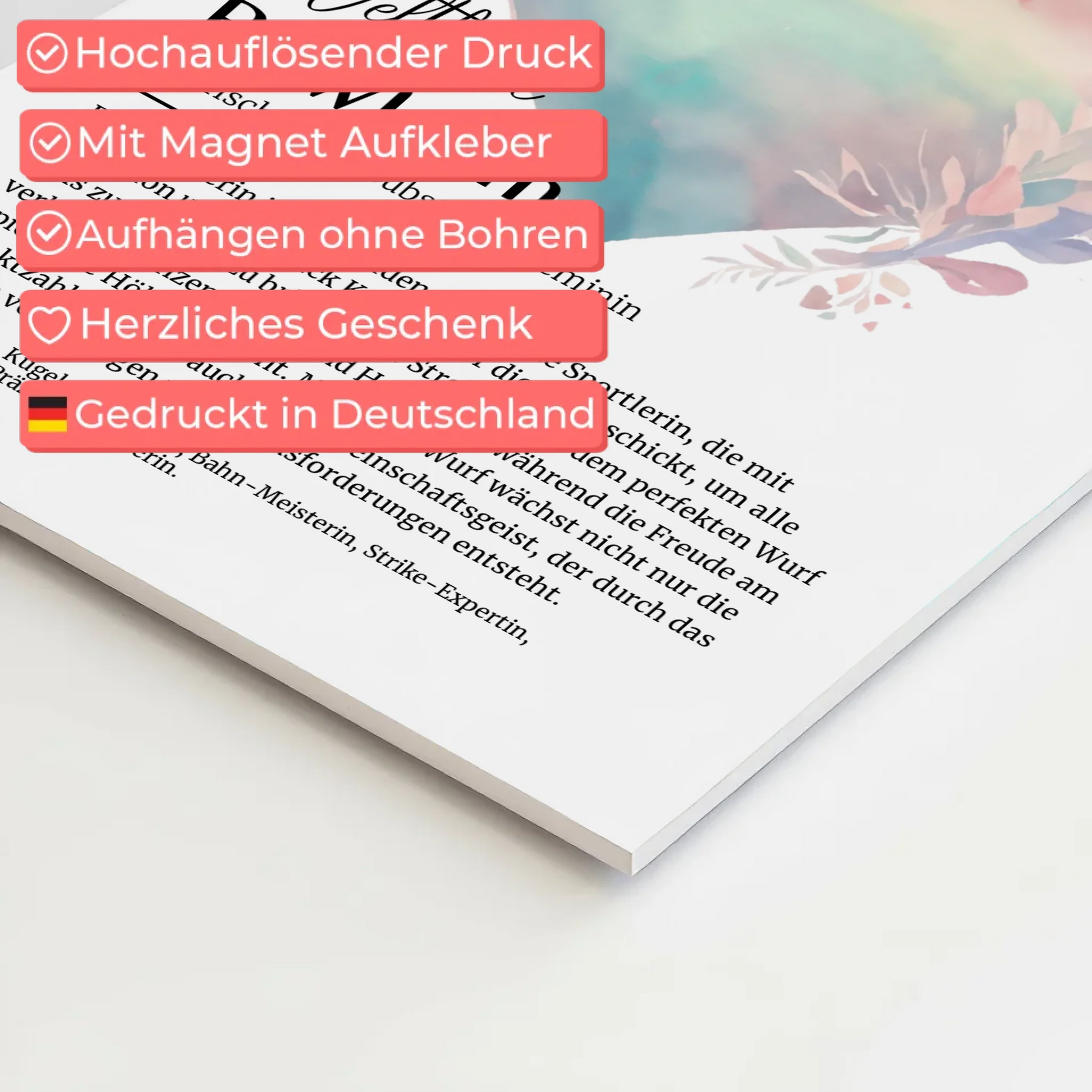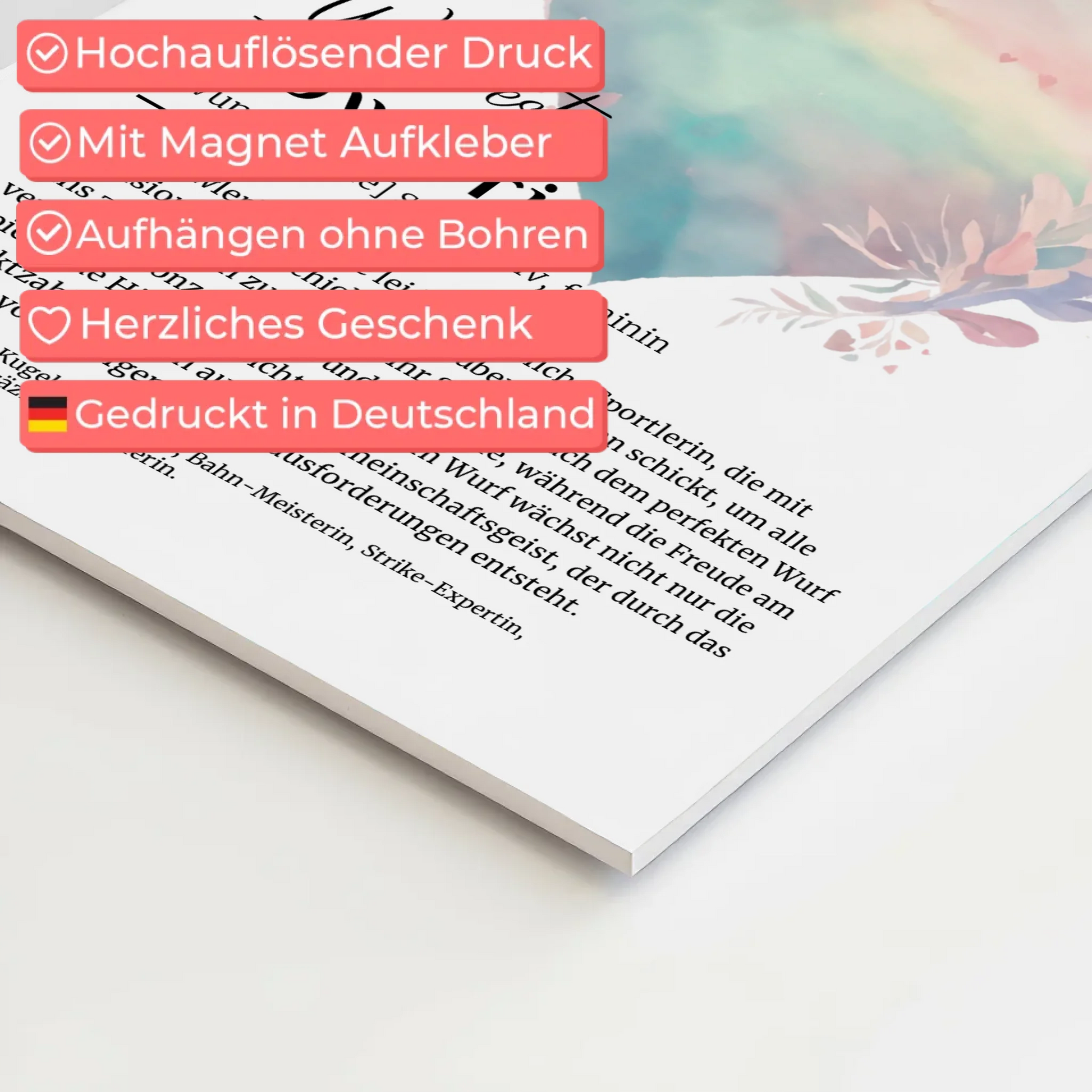 Magnetposter Fotoboard Bowlerin Bowling mit Namen Geschenk