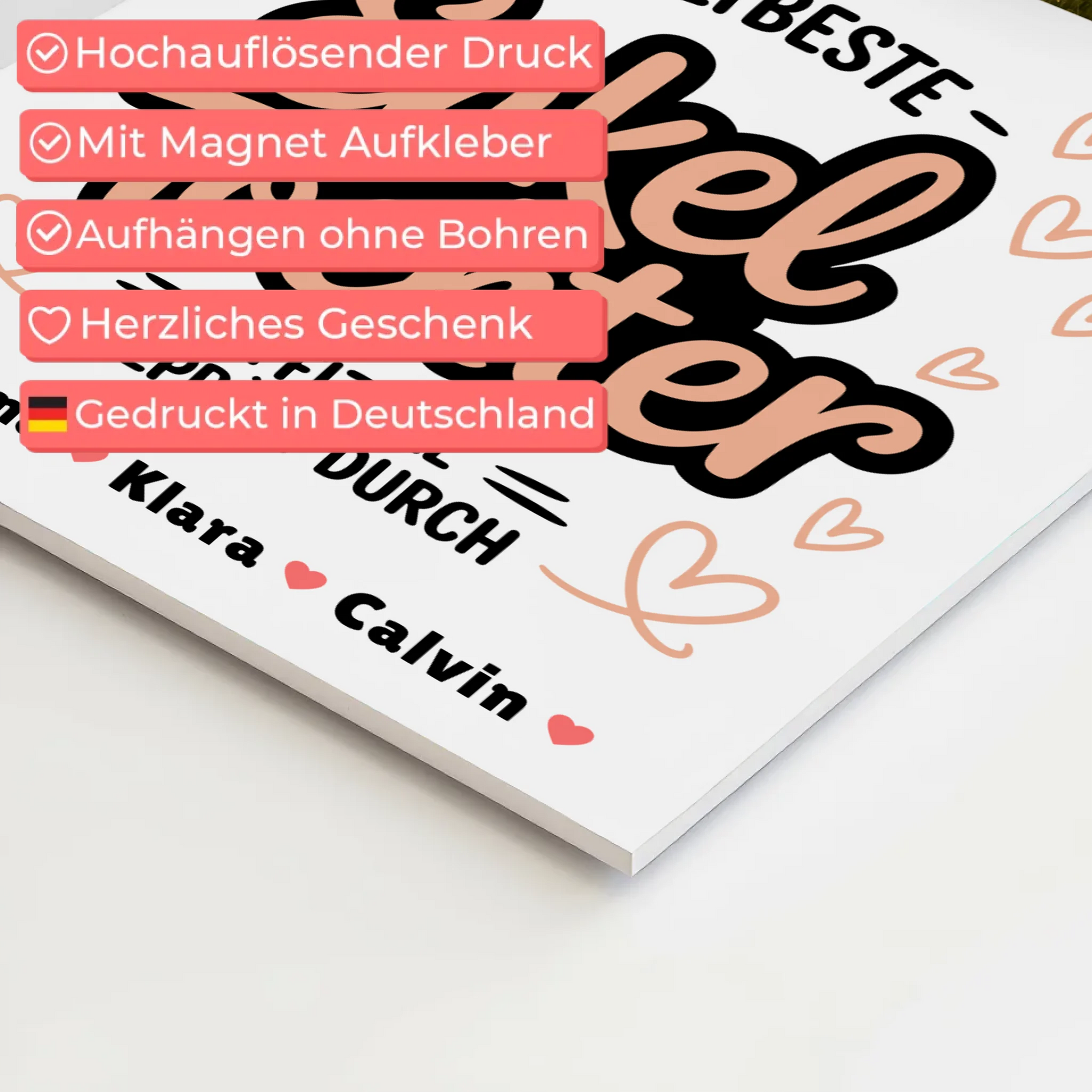 Das Design des Magnetposters überzeugt durch eine moderne Fotocollage mit 3 Fotos und einer individuellen Hintergrundauswahl. Im Mittelpunkt steht der herzliche Spruch: „Weltbeste Enkeltochter Offiziell Geprüft Durch, der das Geschenk zu einem echten Highlight macht. So wird das Magnetposter Fotoboard für Enkeltochter zu einer bleibenden Erinnerung, die garantiert für leuchtende Augen sorgt.