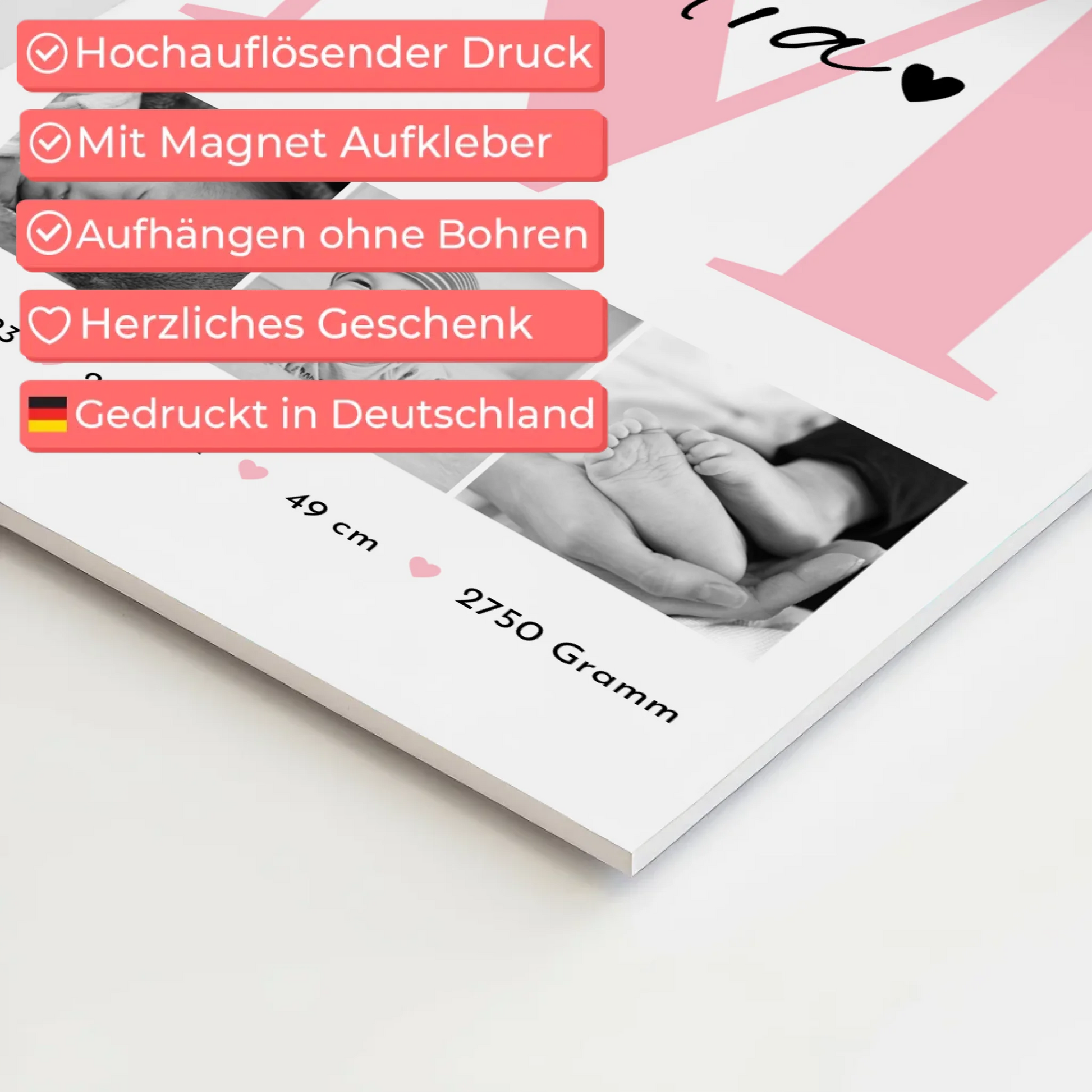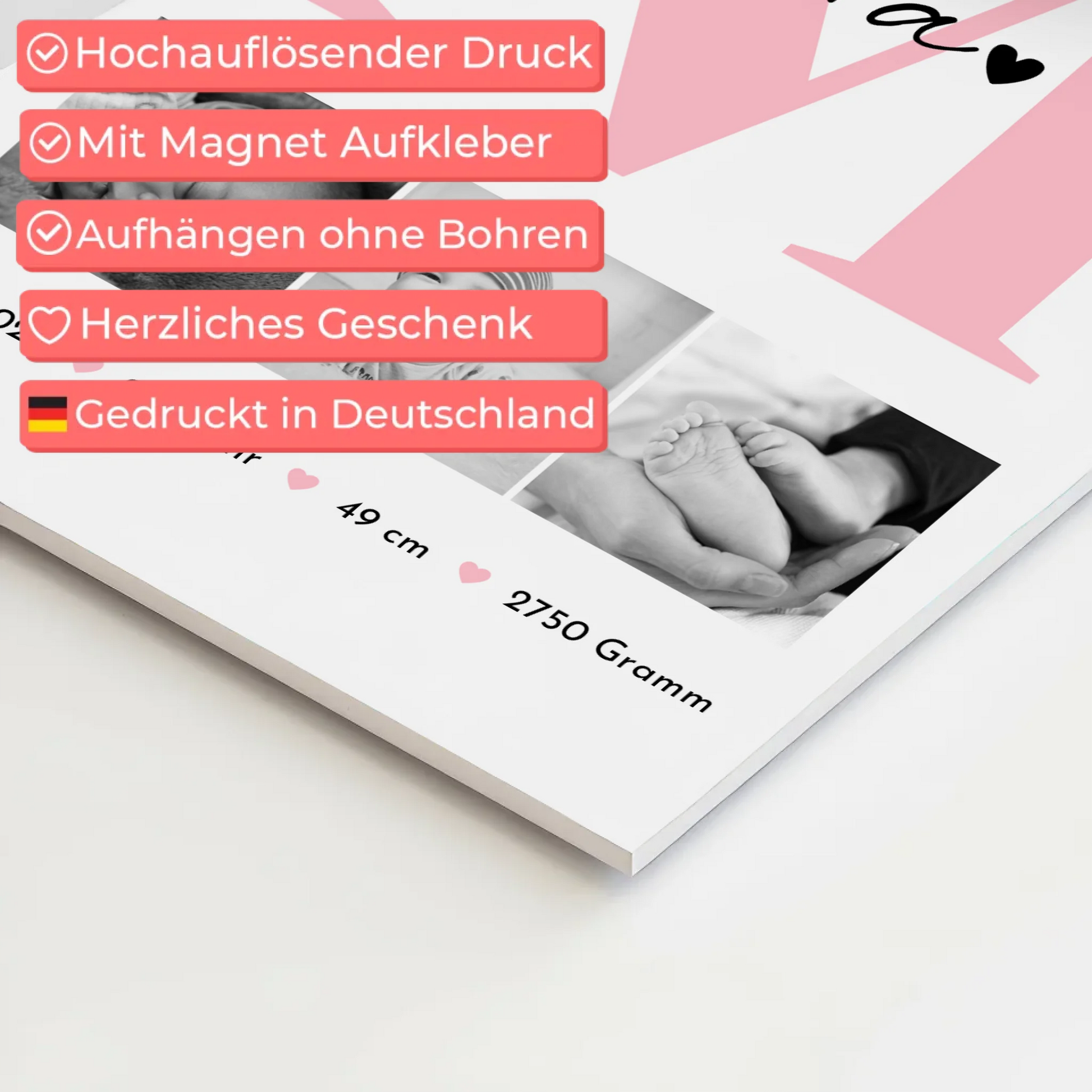 Du suchst ein einzigartiges und persönliches Geschenk zur Geburt? Mit dem Magnetposter Fotoboard Geburt Baby 3 Fotos Geburtsdaten Black White schenkst du bleibende Erinnerungen, die das Herz berühren. Dieses liebevoll gestaltete Fotoboard ist speziell für Babys zur Geburt konzipiert und bietet dir zahlreiche Möglichkeiten zur Individualisierung.