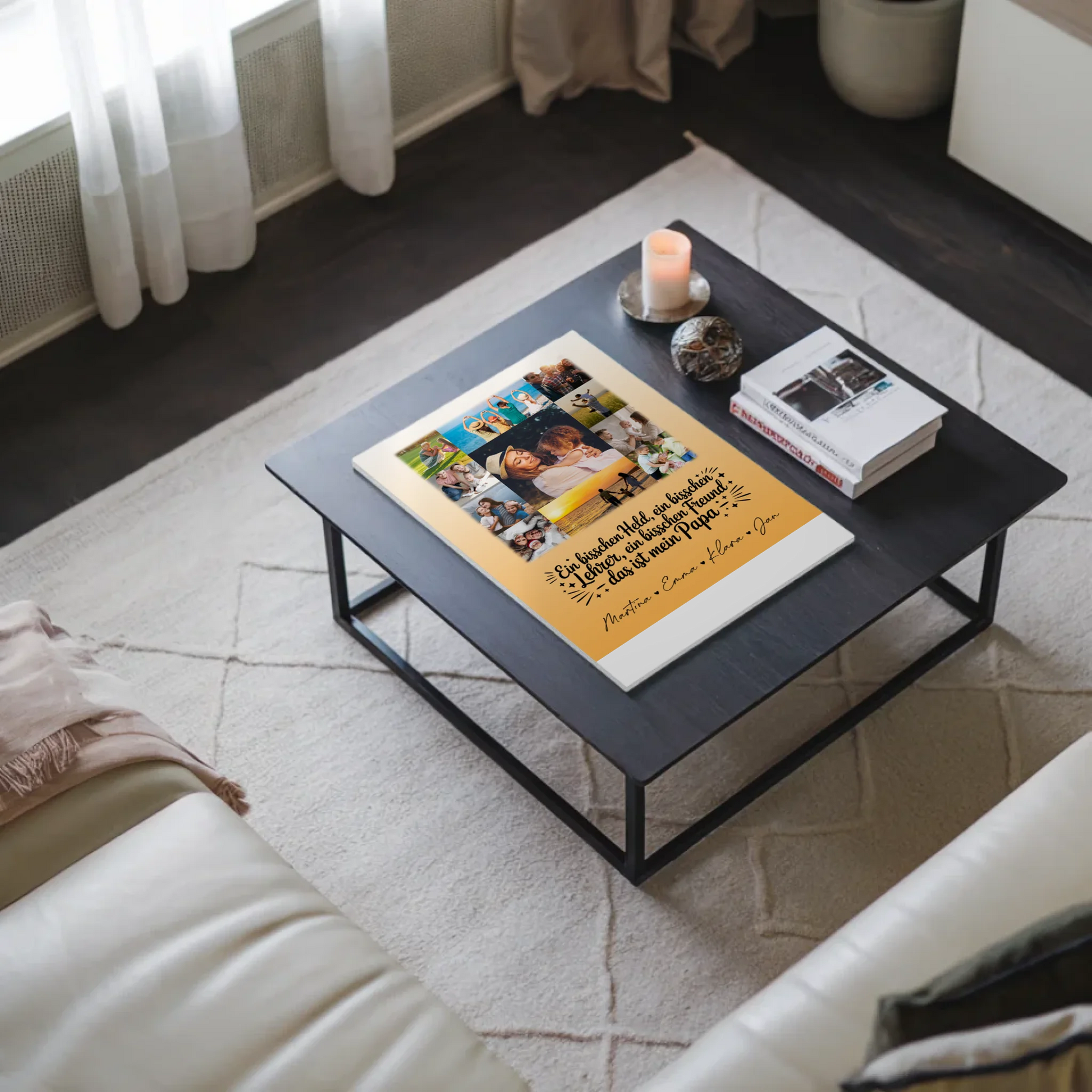 Überrasche deinen Papa mit dem einzigartigen Magnetposter Fotoboard mit 11 Fotos Held Beschützer Freund mein Bruder personalisiertes Geschenk. Dieses individuell gestaltbare Poster ist eine besondere Art, deine schönsten Erinnerungen und liebevollen Botschaften zu präsentieren. Du kannst bei diesem Geschenk die 11 Fotos, einen eigenen Spruch oder Wunschtext sowie die Namen personalisieren, um es ganz persönlich zu machen. Das Design zeigt den inspirierenden Spruch: „Ein bisschen Held, ein bisschen Beschützer, ein bisschen Freund – das ist mein BRUDER“, was perfekt die besondere Beziehung zwischen dir und deinem Papa widerspiegelt. Dieses personalisierte Fotocollage für Papa eignet sich ideal für den Anlass Vatertag und ist ein emotionales Geschenk, das garantiert für Freude sorgt. Das Magnetboard lässt sich bequem an jeder metallischen Oberfläche befestigen und bietet dir die Möglichkeit, deine Fotos und Botschaften immer wieder neu zu arrangieren. Zeige deinem Papa, wie sehr du ihn schätzt, mit diesem einzigartigen, personalisierten Magnetposter Fotoboard mit 11 Fotos Held Beschützer Freund mein Bruder personalisiertes Geschenk – eine liebevolle Erinnerung, die lange in Erinnerung bleibt.