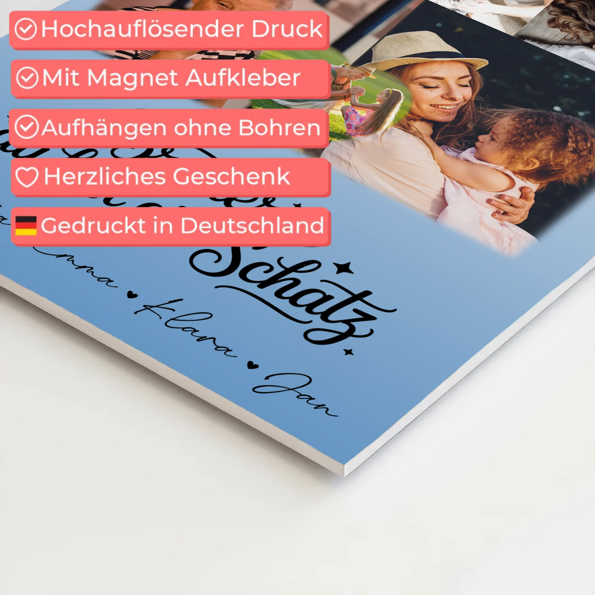 Magnetposter Fotoboard mit 8 Fotos und 1 Herz Foto Bruder du bist mein Schatz personalisiertes Geschenk