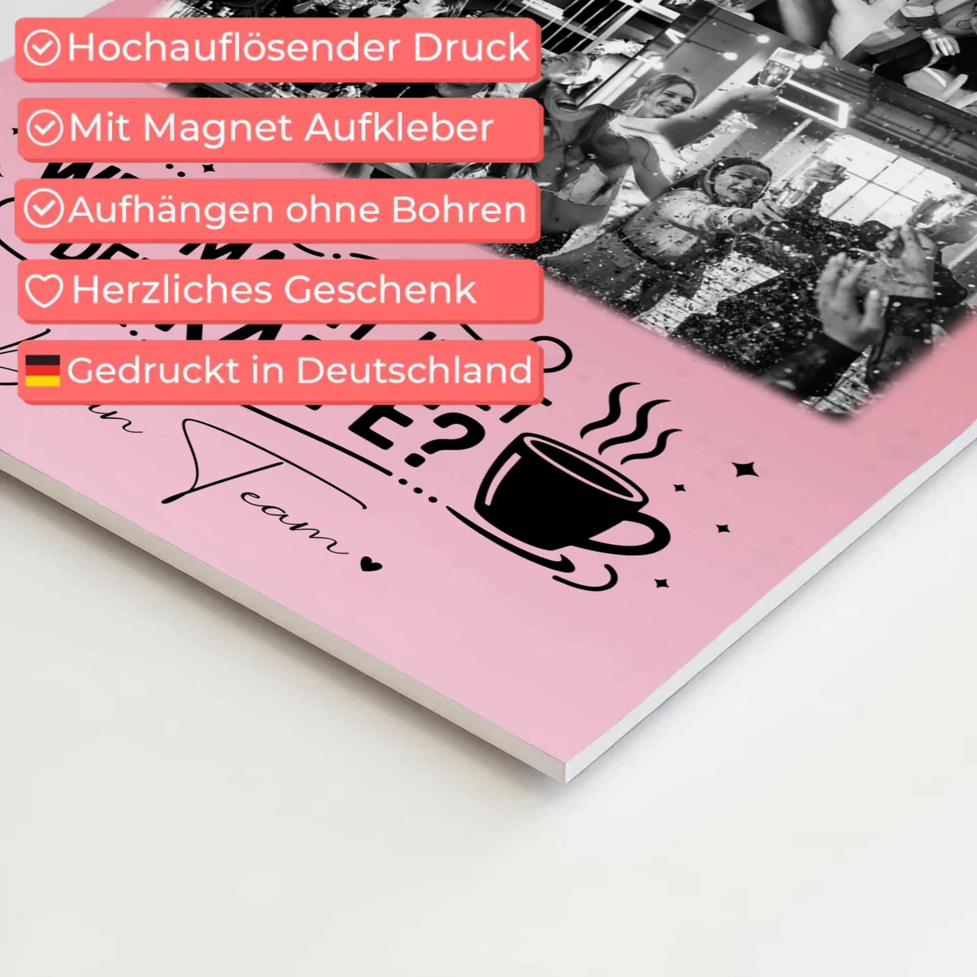 Entdecke das einzigartige Magnetposter Fotoboard mit 8 Fotos und 1 Herz Foto Personalisiertes Geschenk Einfach so und schaffe eine bleibende Erinnerung, die Herzen berührt. Dieses individuell gestaltbare Geschenk ist ideal, um deiner Kollegin eine besondere Freude zu machen, besonders bei einer Verabschiedung. Du kannst das Poster ganz nach deinen Wünschen personalisieren: Wähle bis zu 9 Fotos, füge einen eigenen Spruch oder Wunschtext hinzu und nenne die Namen der Person. Das Design ist mit dem schönen Spruch Einfach so gestaltet und macht das Geschenk zu einem echten Blickfang. Das Magnetposter ist vielseitig einsetzbar und eignet sich perfekt, um gemeinsame Erinnerungen stilvoll zu präsentieren. Überrasche deine Kollegin mit diesem liebevoll personalisierten Geschenk, das sowohl emotional als auch dekorativ ist. Bestelle jetzt dein Magnetposter Fotoboard mit 8 Fotos und 1 Herz Foto Personalisiertes Geschenk Einfach so und zeige deine Wertschätzung auf eine ganz besondere Art!