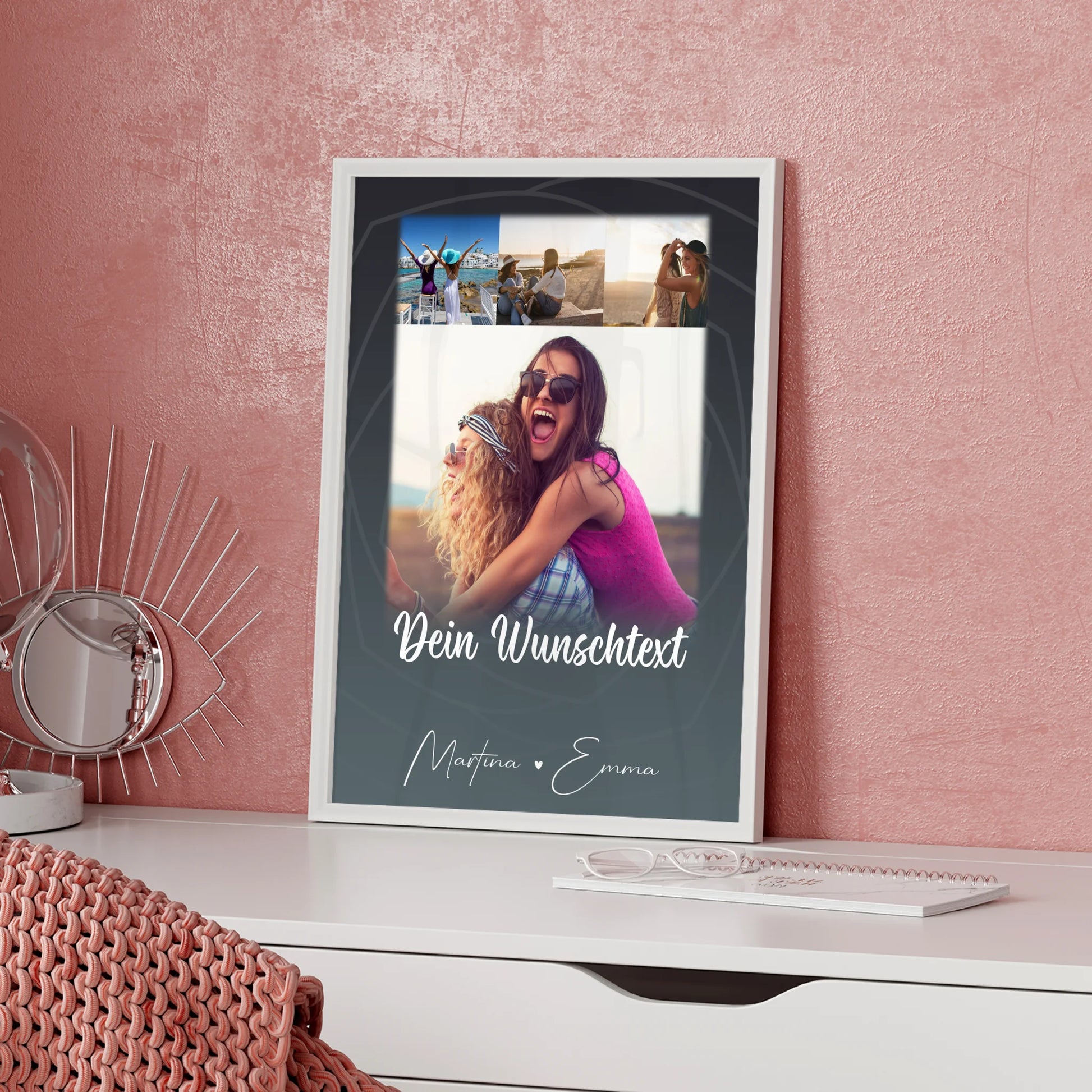 - Dein Wunschtext & Namen: Füge eure Namen hinzu oder verfasse einen ganz persönlichen Spruch, der von Herzen kommt.