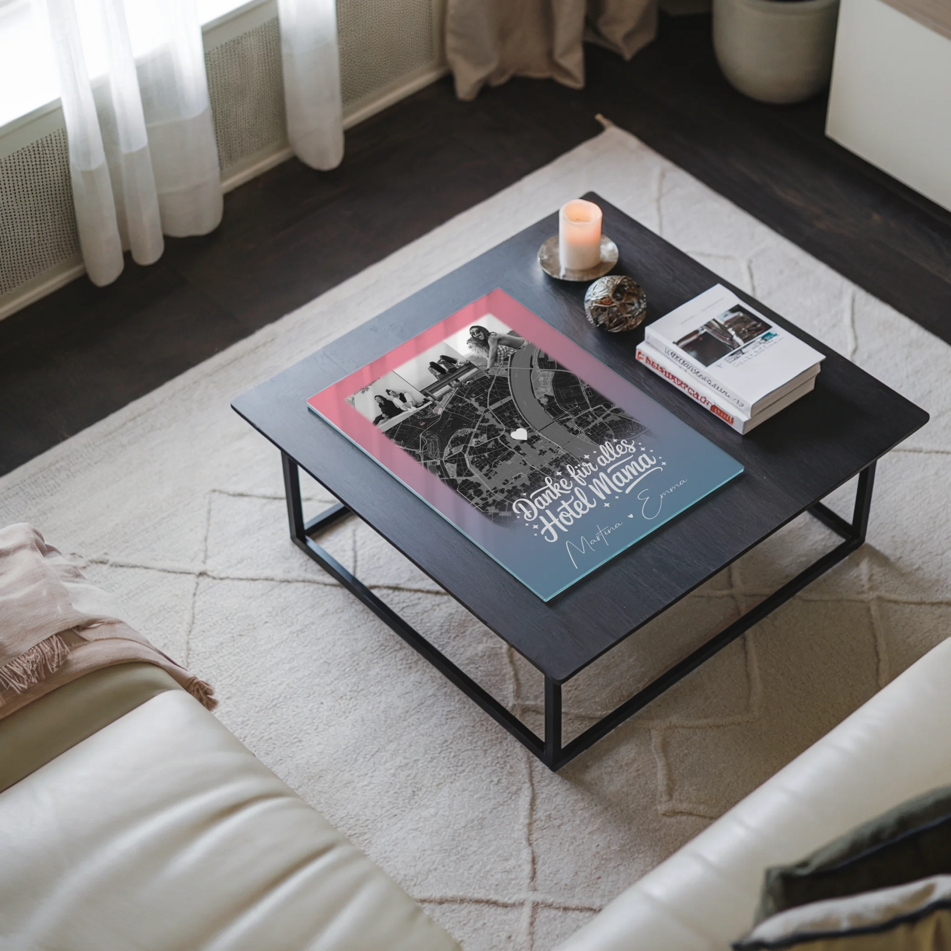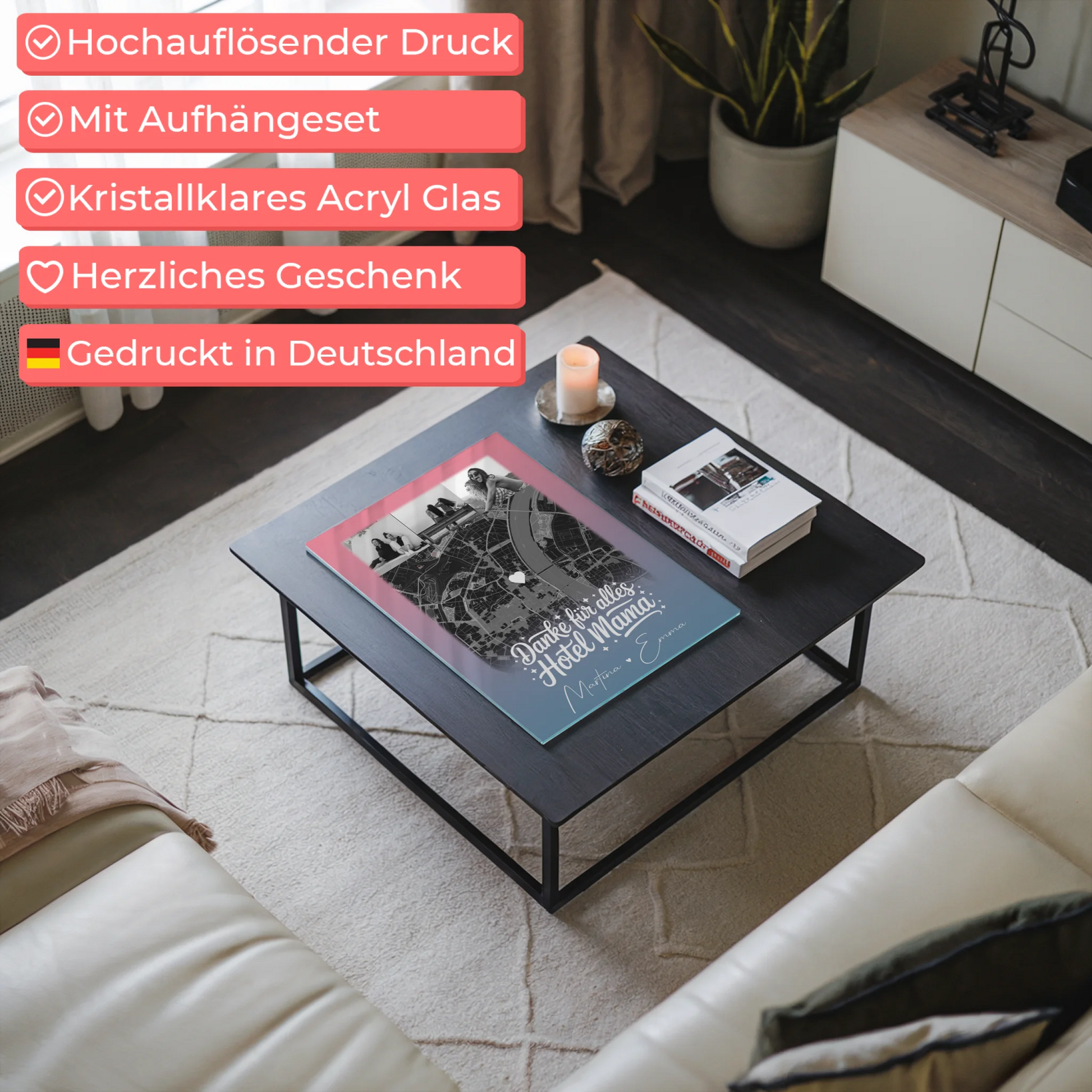 Personalisierte Mama Plakat Acrylglas Bild mit 4 Fotos und Karte – Einfach mal Danke sagen