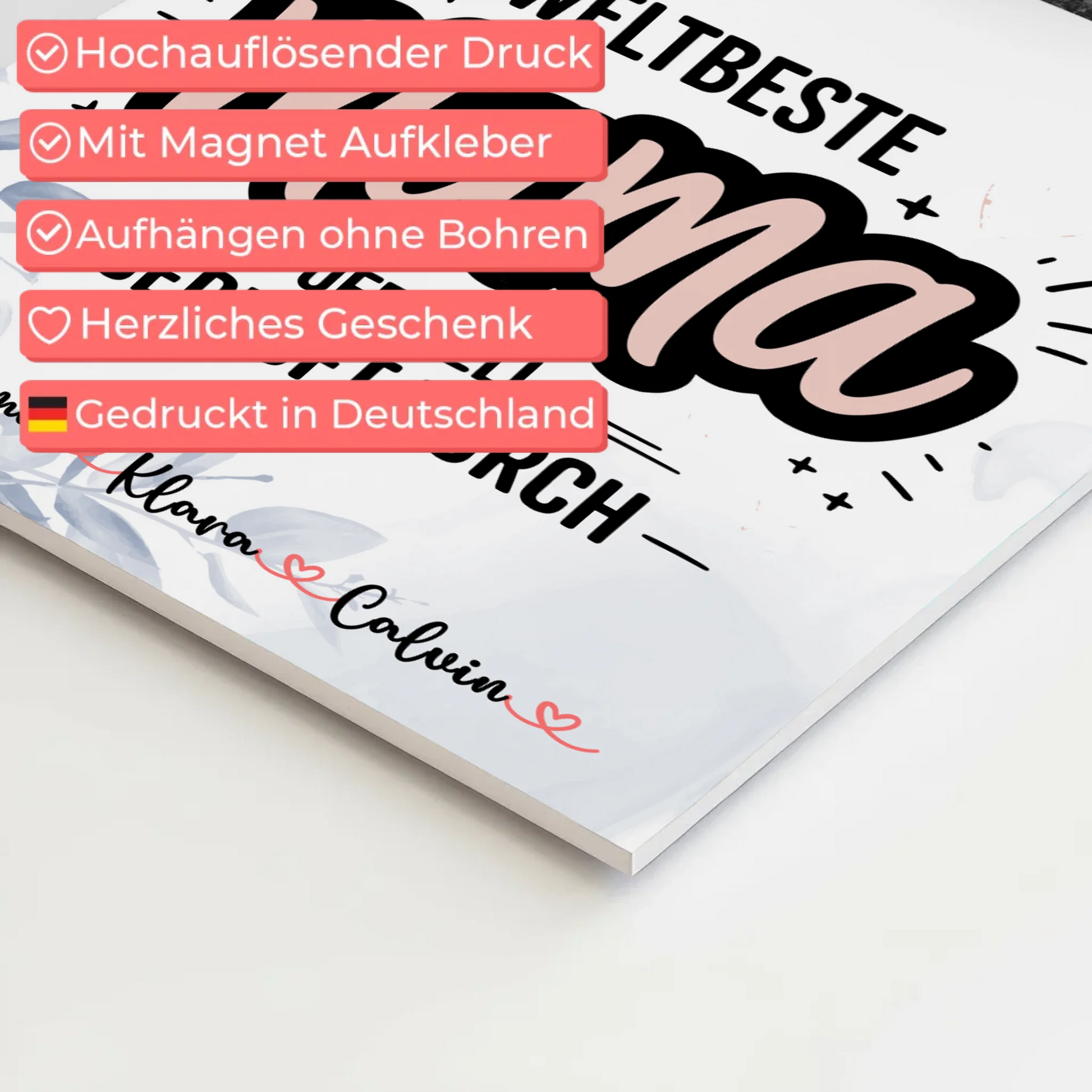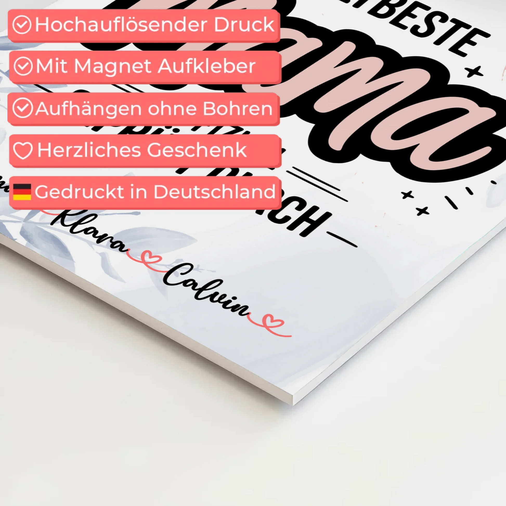 Gestalte jetzt dein individuelles Mama Plakat Fotoboard und mache deiner Mama eine unvergessliche Freude. Einfach Fotos, Namen und Hintergrund auswählen - fertig ist das perfekte, personalisierte Geschenk für die weltbeste Mama!