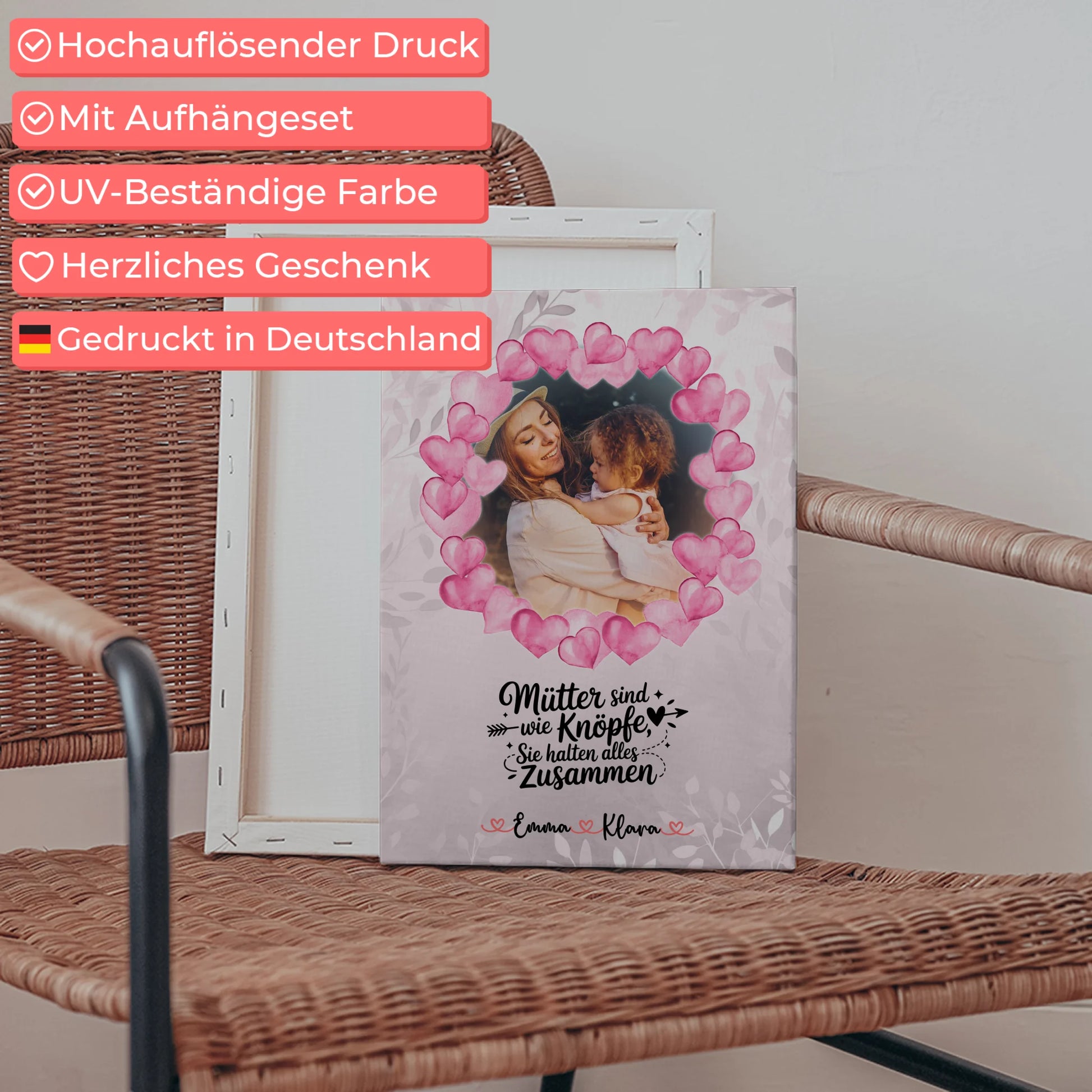 Ideal als Geschenk für Mama zum Muttertag, um Dankbarkeit und Nähe auszudrücken. Die Leinwand eignet sich perfekt als Deko im Wohnzimmer, Schlafzimmer oder Flur.