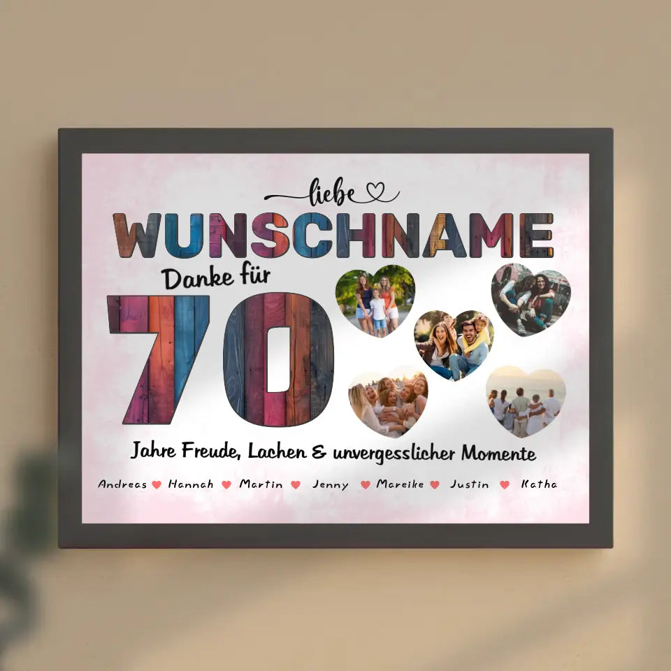 Mama Poster personalisiert für 70 Geburstag mit 5 Herzfotos Alles Gute