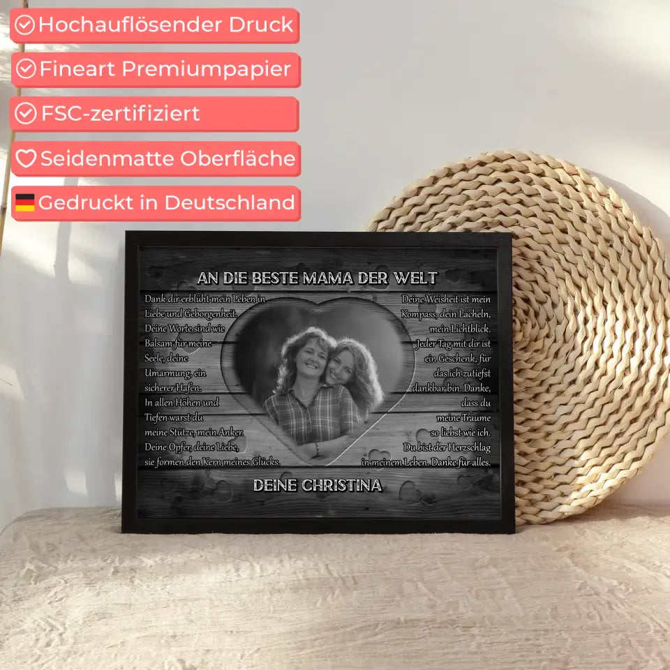 Du möchtest mal wieder etwas einzigartiges verschenken? Unser Mama Poster personalisiert Schwarz Weiß Danke ein wirklich einzigartiges personalisiertes Geschenk.