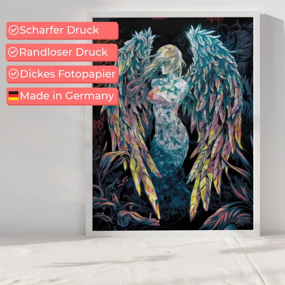 Bestellen Sie jetzt Ihr Manga Poster mit Engel und biolumineszierendem Feuermosaik und bringen Sie ein Stück lebendige Kunst in Ihr Zuhause. Verpassen Sie nicht die Chance, Ihre Wände mit diesem einzigartigen Kunstwerk zu bereichern und eine Atmosphäre voller Kreativität und Fantasie zu schaffen.