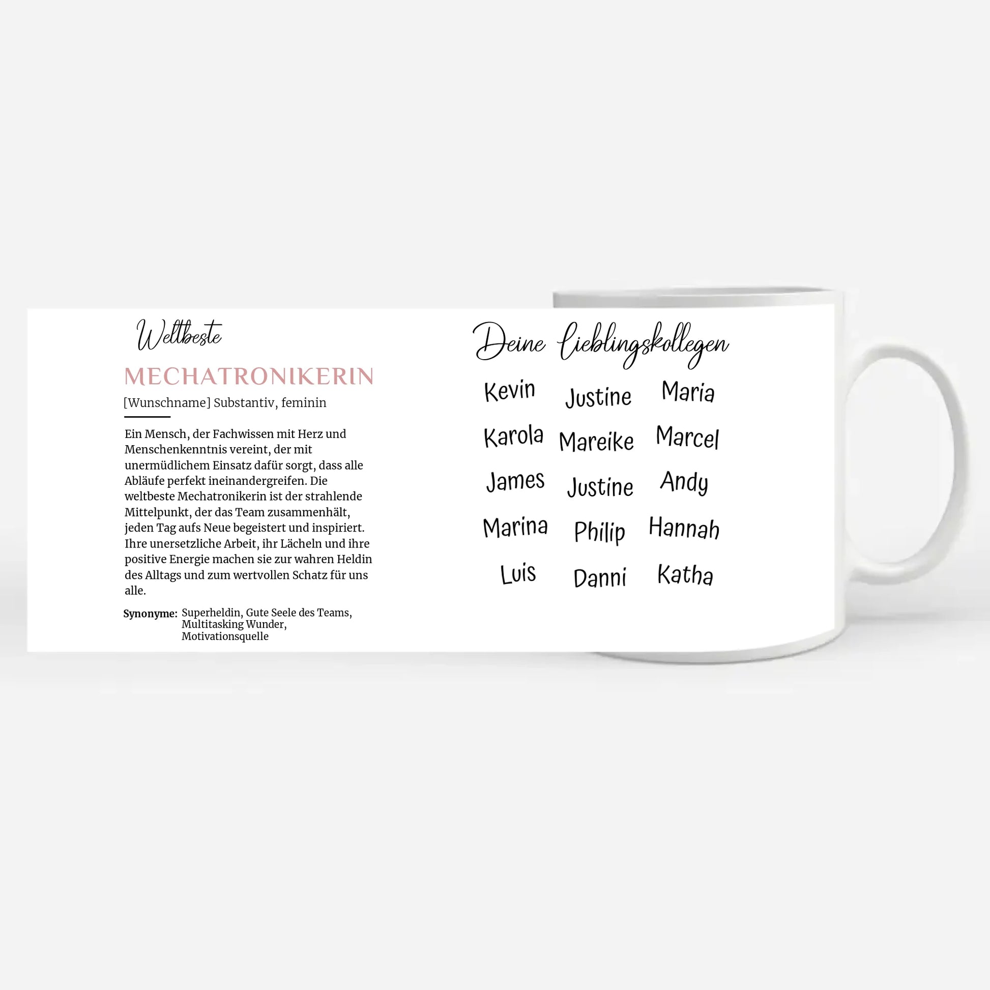 Diese personalisierte Tasse ist perfekt für alle Mechatronikerinnen . Also perfekt als Jubiläumsgeschenk oder zum Abschied .