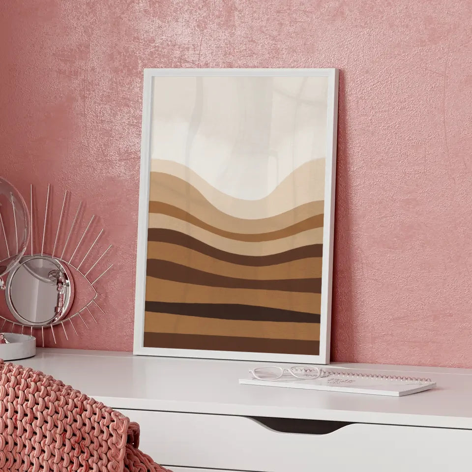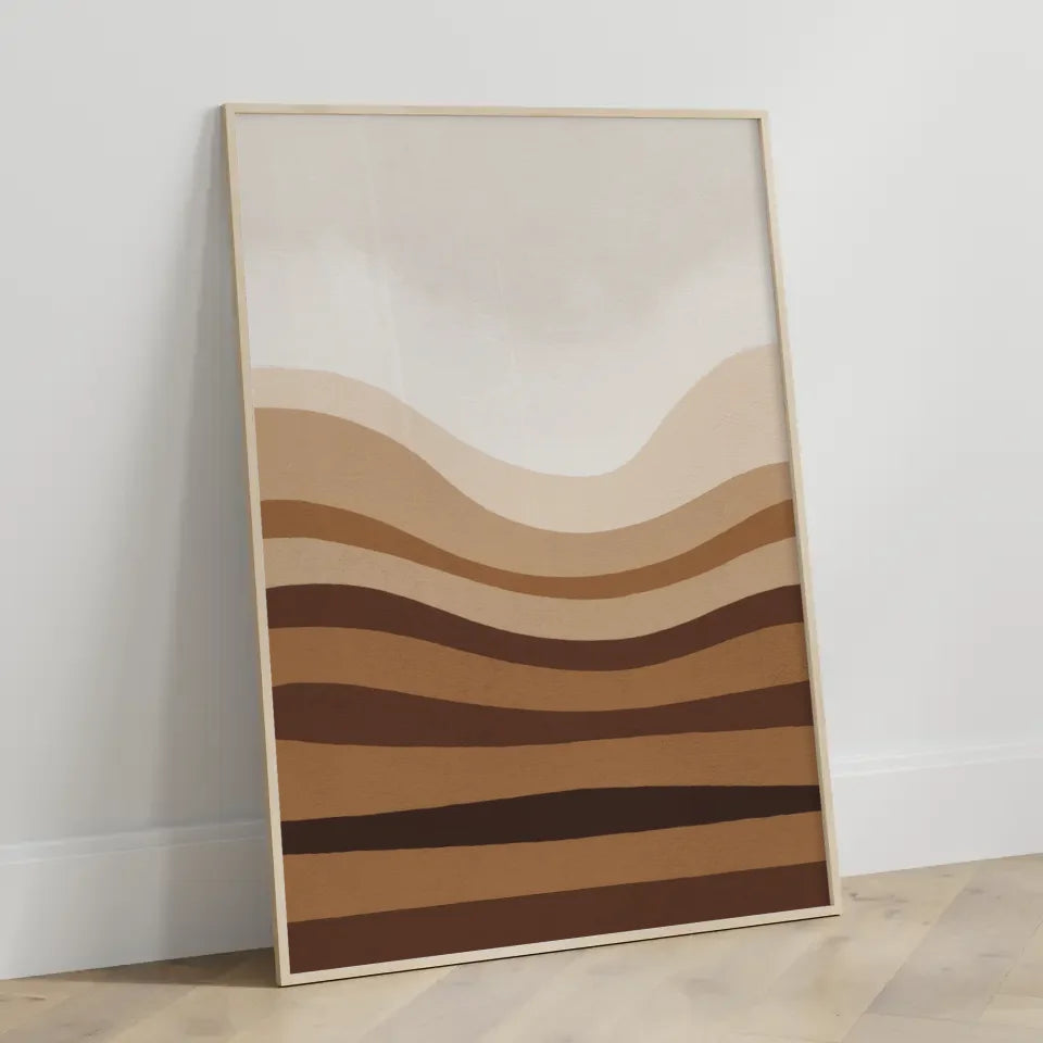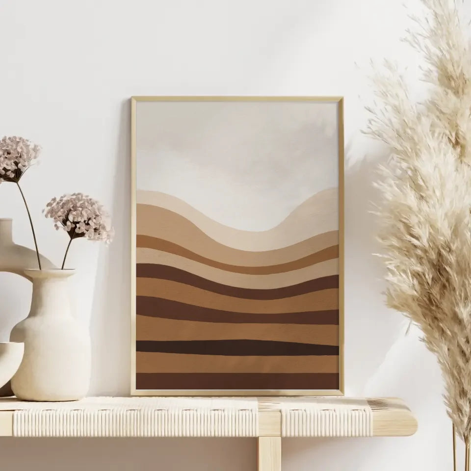 Minimales Kunstposter mit Brauntönen und Licht für ruhige Räume