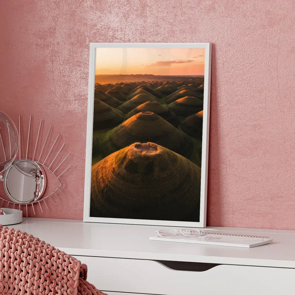 Gestalten Sie Ihre Wände individuell und setzen Sie mit dem Poster Chocolate Hills Philippinen Panoramafoto zur Golden Hour einen besonderen Akzent in Ihrer Einrichtung. Jedes Poster wird mit höchster Sorgfalt produziert und sorgt für Qualität, die begeistert.